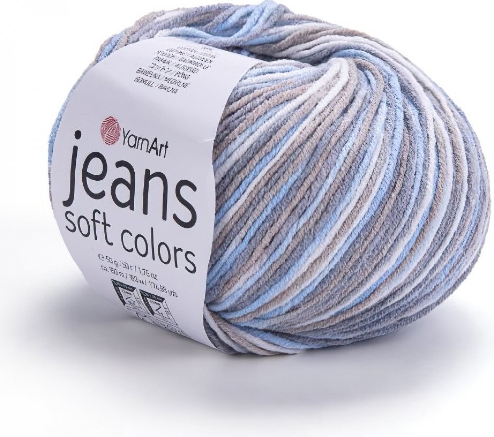 Směsová pletací / háčkovací příze (55% bavlna a 45% polyakryl) v melírované jemné šedo-modré barvě, Je vhodná na různé druhy pletení a háčkování a díky její všestrannosti se dá využít téměř na cokoliv. Tloušťka i složení je úplně stejné jako u základní, od klasické příze Jeans se liší neuvěřitelně jemným pastelovým zbarvením. Doporučená velikost jehlic a háčku je 3,5 mm.