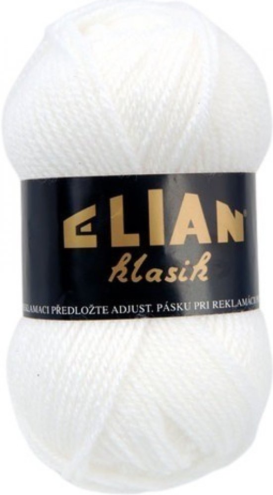Pletací příze Elian Klasik 208 - Bílá antipilling pro ruční pletení, oblíbená příze výborných vlastností, hebká, vhodná pro úplety na děti i miminka, vhodná i pro háčkování, od VSV s.r.o. Pilníkov Složení: 100% akrylik antipilling Hmotnost: 50 g Návin: 125 m Jehlice: 3 - 3,5 Háček: 3,5
