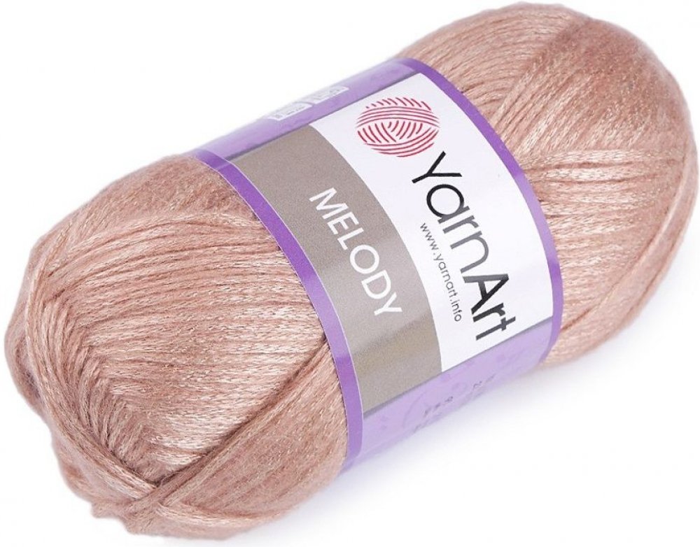 Pletací příze Melody zaujme svým jemným metalickým efektem.Použití: Přízi využijete k háčkování či pletení svetrů, čepic, vest apod.