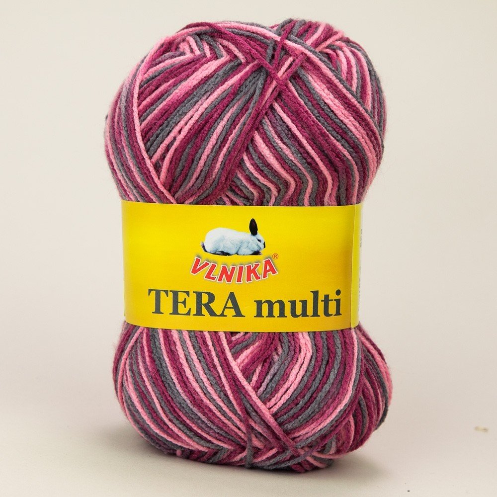 Pletací příze Vlnika TERA MULTI 829 vínovo-růžová, melírovaná, 100g/300m