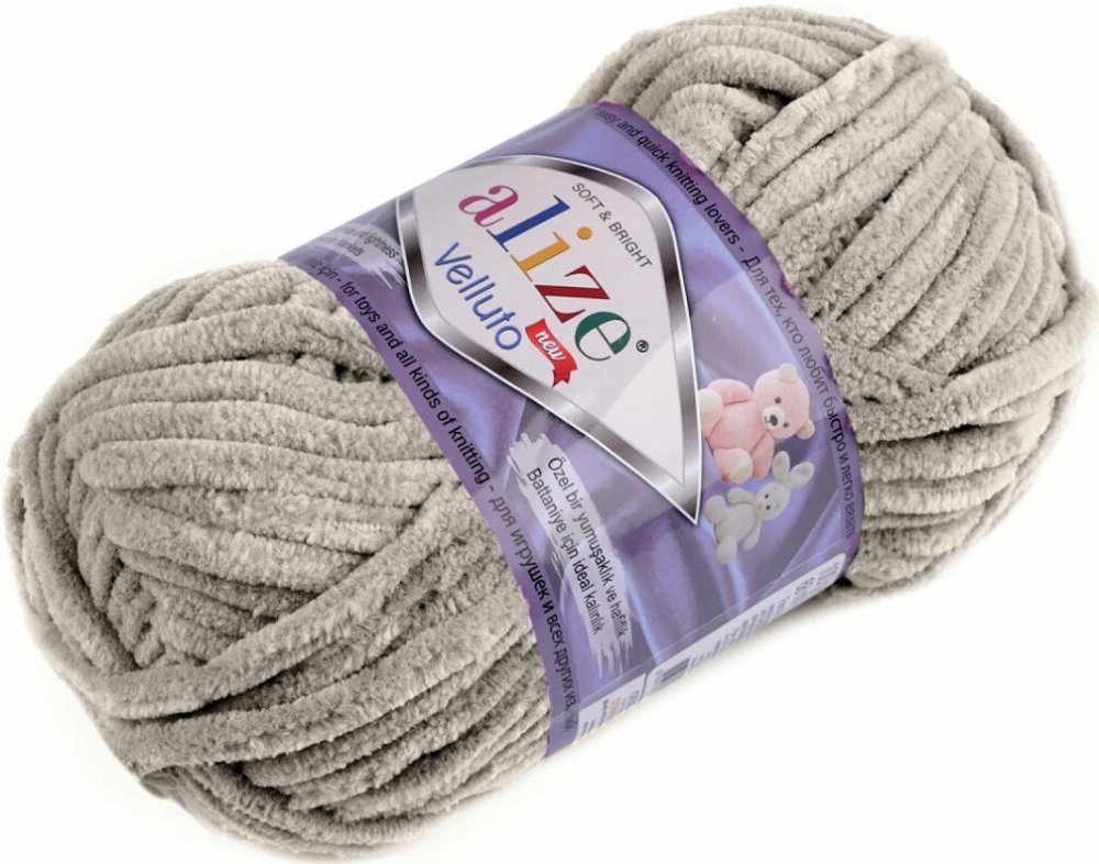 Pletací žinylková příze Alize Velluto 100 g - (530) šedobéžová