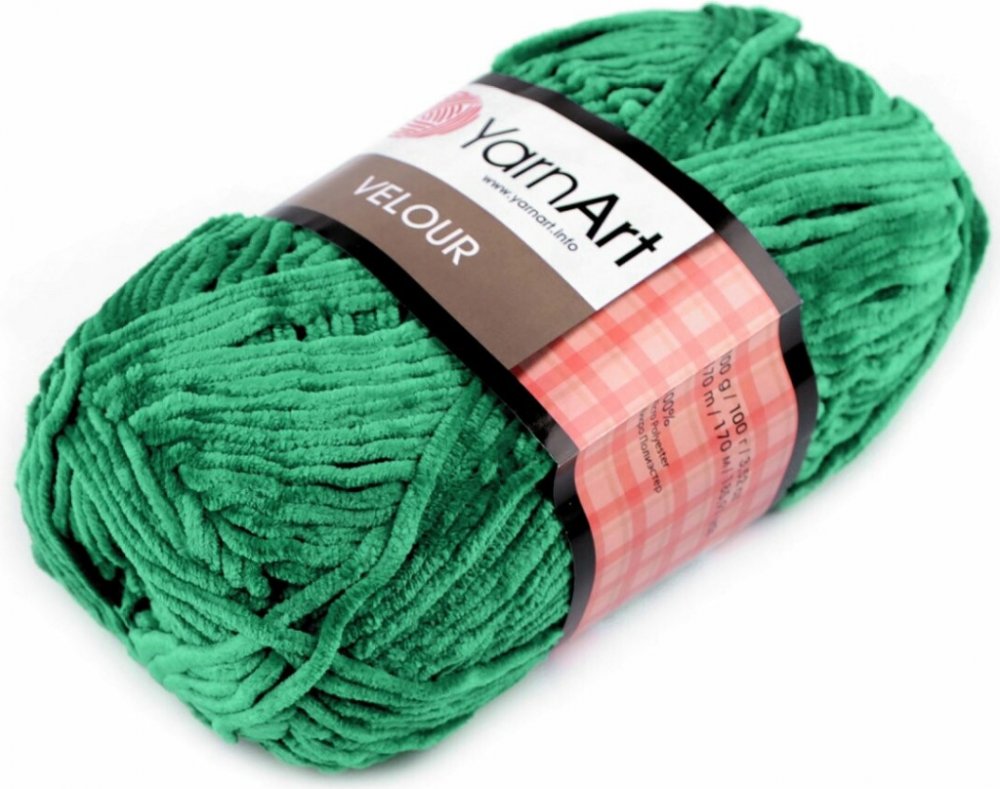 Pletací žinylková příze Velour 100 g - (856) zelená jedle
