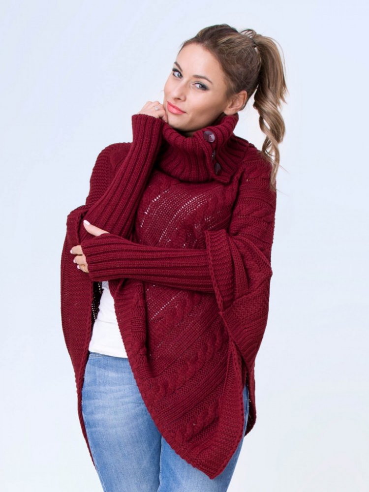 Pletené dámské pončo NOEMI vínové