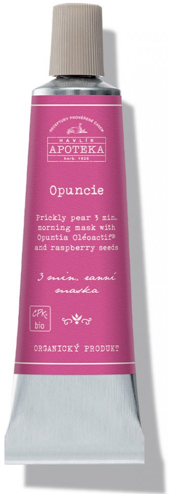 3minutová ranní pleťová maska Opuncie s extraktem z opuncie a peelingem z malinových zrníček, která zjemní a rozjasní suchou a zralou pleť. Obsahuje klinicky ověřenou aktivní látku Opuntia Oléoactif®.