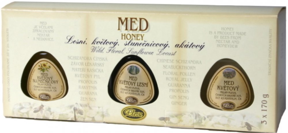 Pleva dárková krabička s medy 3 x 170 g