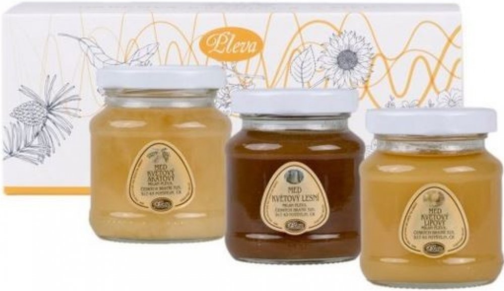 Dárková krabička s medy - akátový, lipový a lesní med 3x170 g - Pleva
