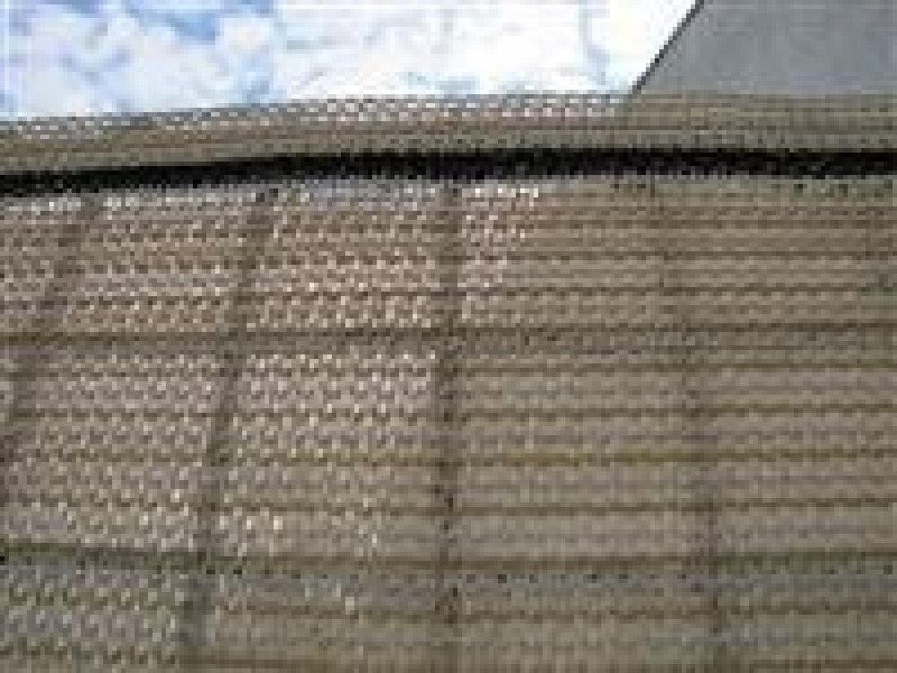Stínící tkanina s úchyty při horním a dolním okraji - dokončená. Horní a spodní okraje stínící tkaniny jsou každých 5 cm opatřeny otvory pro ukotvení.