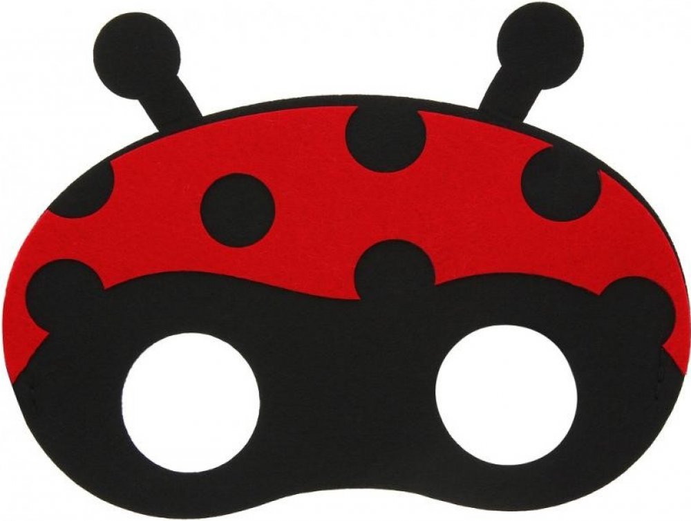 Plstěná maska na obličej Beruška vyrobená z materiálu příjemného na dotek opatřená tenkým elastickým páskem, velikost 18,5 x 14 cm.
