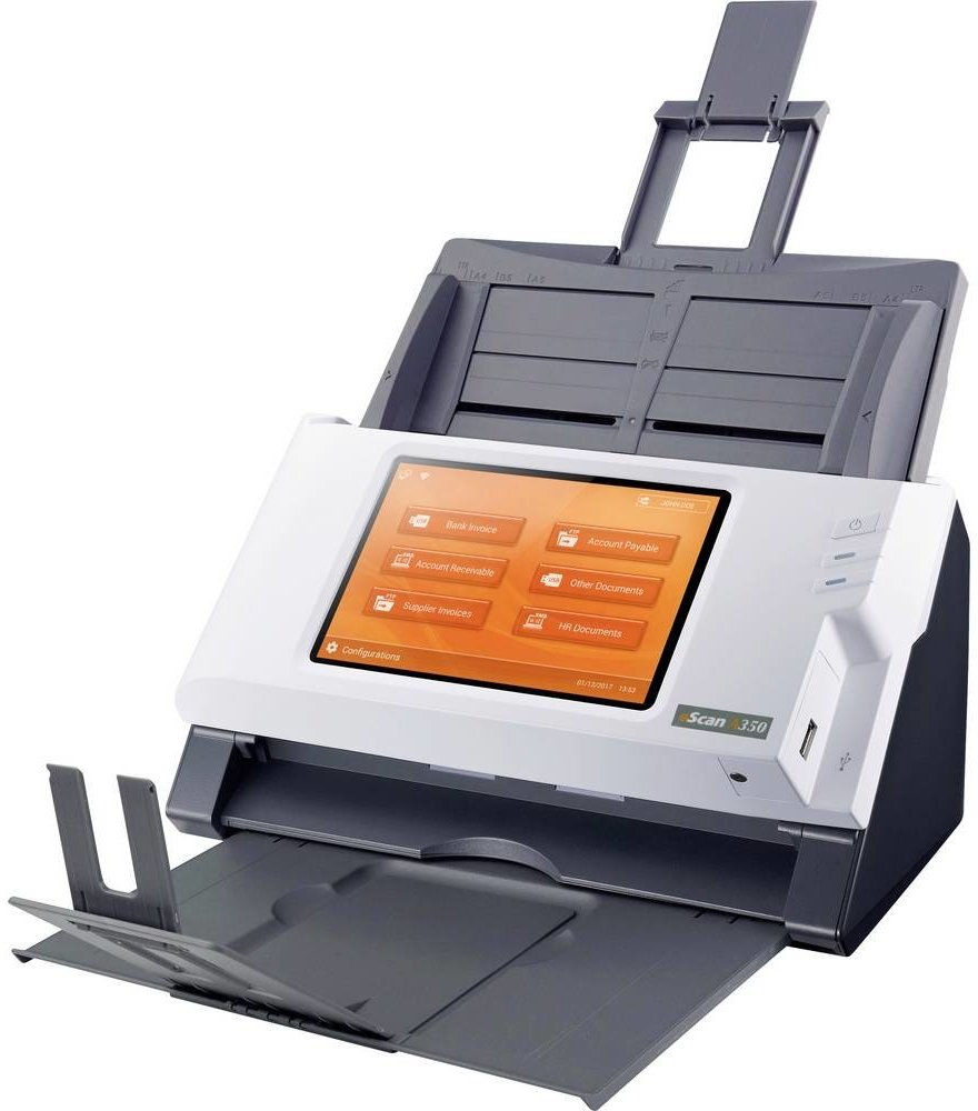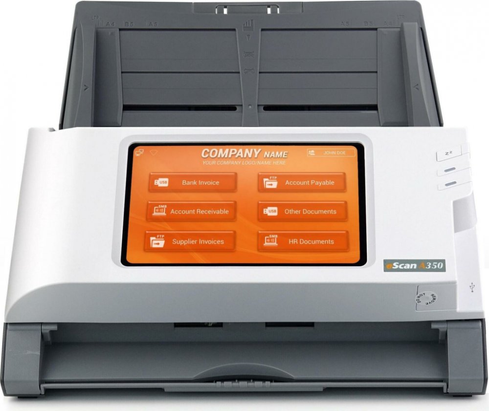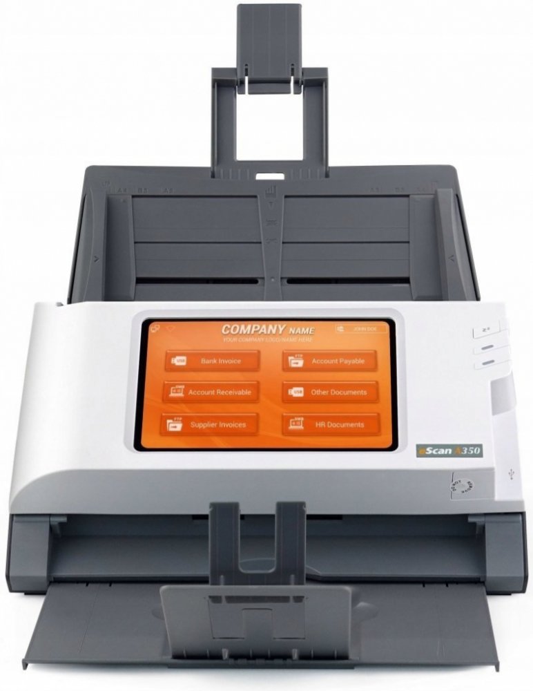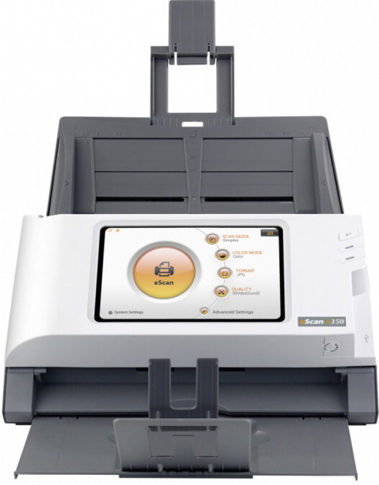 Plustek A350 Enterprise, eScan. Optické rozlišení skenování: 600 x 600 DPI, Barevná hloubka vstupu: 48 bit, Barevná hloubka výstupu: 24 bit. Typ skeneru: ADF+Ruční stahovací skener, Barva: Černá, Bílá, Typ obrazovky: LED (Elektroluminiscenční dioda). Typ obrazového snímače: Dual CIS, Maximální denní pracovní cyklus: 6000 stran, Skenovat do: Mail, FTP, SMB, USB. Kapacita automatického podavače papíru: 50 listů. Maximální velikost papíru ISO (řada A): A4, Maximální skenovací plocha (Auto Document Feeder): 216 x 356 mm, Gramáž médií pro automatický podavač papíru: 40 - 157 g/m²