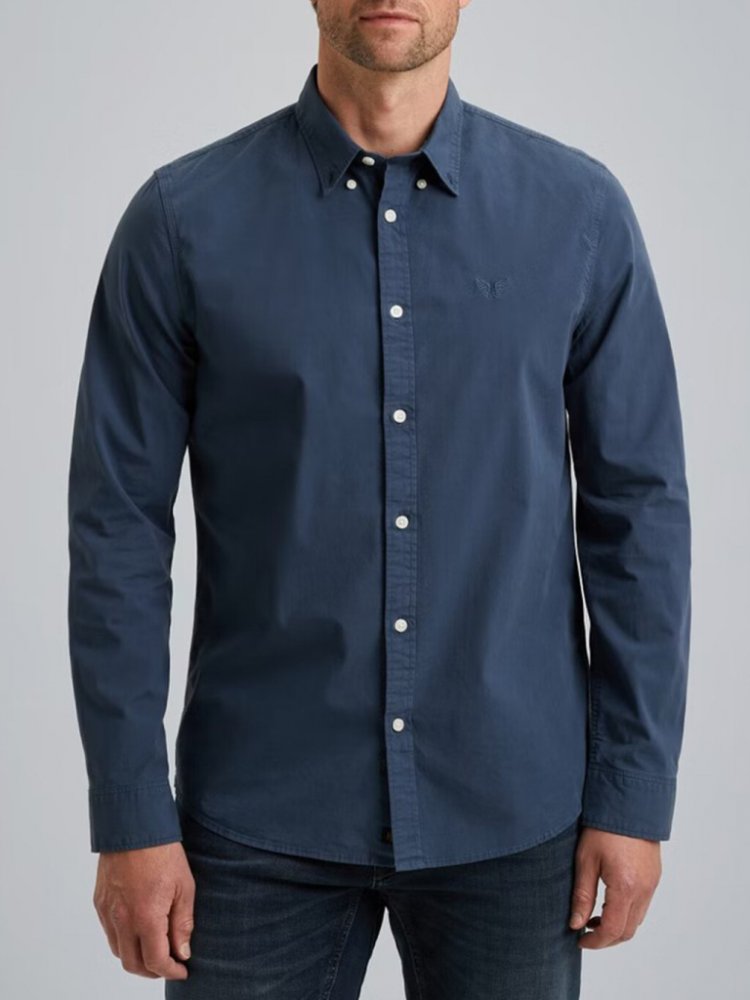 Jednoduchá košile v americkém stylu od značky PME Legend. Je vyrobena z lehkého popelínu se strečem a velmi měkkým povrchem, budete se cítit velice příjemně po celý Váš den. Pro extra cool vzhled ji noste rozepnutou přes tričko, čímž snadno vytvoříte stylový vrstvený outfit. Model měří 190 cm a má na sobě velikost M. pánská jednobarevná košile - modrá lehce obnošený vzhled malá výšivka na hrudi ce...