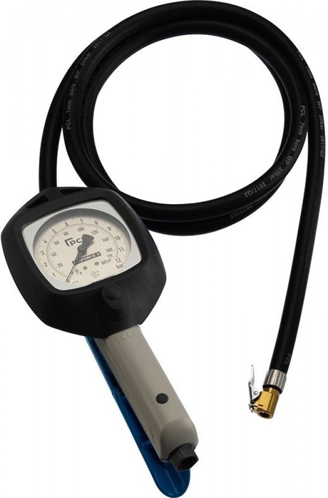 Pneuhustič PCL Airforce II AFG1H08 Pneuhustič PCL Airforce II AFG1H08 je precizní analogový pneuhustič určený pro profesionální i domácí použití, který zajišťuje spolehlivé měření a rychlé huštění pneumatik. Díky skříni z odolného nylonového plastu a robustnímu tlakoměru s kruhovou stupnicí o průměru 70 mm se jedná o vysoce odolný produkt. Tlakoměr chráněný pryžovým pláštěm spolehlivě absorbuje mechanické nárazy, což zvyšuje jeho životnost i bezpečnost při používání. S přesností čtení na 0,1 bar nabízí snadno čitelnou hodnotu tlaku, a to s rozsahem měření od 0 do 12 bar. Rychlost huštění je zajištěna vysokým průtokem vzduchu (910 l/min), který je ideální pro efektivní servis pneumatik. Pneuhustič je kalibrovatelný a individuálně testovaný již z výroby, splňuje přísné normy EC Directive 86/217 a BS EN 12645:1999 a je typově schválený jako měřidlo pro profesionální použití. Možnost zavěšení pneuhustiče zvyšuje jeho praktičnost, a připojení na stlačený vzduch přes závit 1/4" zajišťuje univerzální kompatibilitu. Výhody produktu: Odolná konstrukce z nylonového plastu pro maximální životnost. Přesný a snadno čitelný tlakoměr s rozsahem až 12 bar. Kvalitní pryžová ochrana tlakoměru, která pohlcuje nárazy. Rychlé huštění pneumatik s průtokem vzduchu 910 l/min. Snadné čtení tlaku s rozlišením na 0,1 bar pro vysokou přesnost. Evropská certifikace a možnost kalibrace pro profesionální použití. Kompatibilní připojení na stlačený vzduch pomocí standardního závitu 1/4". Parametry: rozsah 0 - 12 bar, hadice 2,7 m, koncovka Euro Clip-on – koncovka s páčkovým zajištěním s otevřeným koncem, která se připne a drží na ventilu pneumatiky, má kolík, který při nasazení uvolní ventil pneumatiky a tu lze tak nahustit na požadovaný tlak, standardní koncovka pro pneuhustiče v pneuservisech, autoservisech, na čerpacích stanicích apod.