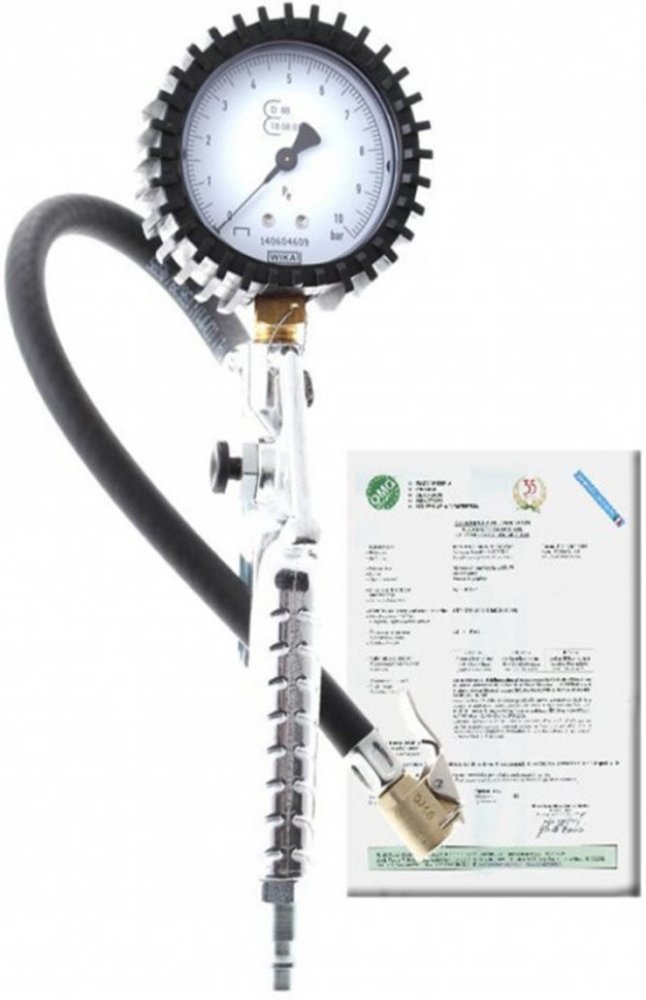 Pneuhustič s certifikátem, cejchovaný OMG83 Pneuhustič OMG83 je vysoce kvalitní, cejchovaný a certifikovaný přístroj, který je ideální pro přesné měření a plnění tlaků v pneumatikách. Je vybaven kalibrovaným měřidlem s certifikátem 86/217/EEC, což zajišťuje vysokou přesnost a spolehlivost při použití. Tento manometr o průměru 80 mm nabízí měřící rozsah od 0 do 10 bar, což pokrývá širokou škálu pneumatických aplikací. Hustící hadice o délce 1 m poskytuje pohodlí při manipulaci. Tento výrobek je vyroben v Itálii, což garantuje kvalitu a dlouhou životnost. Výhody produktu: Cejchovaný a certifikovaný pro přesné měření tlaku. Kalibrované měřidlo s certifikátem 86/217/EEC pro zajištění přesnosti. Průměr manometru 80 mm pro snadné čtení hodnoty. Měřící rozsah 0 - 10 bar, vhodný pro různé pneumatiky. Hustící hadice o délce 1 m pro snadné použití. Vyrobeno v Itálii, což zaručuje vysokou kvalitu a spolehlivost. Ideální pro profesionální použití v servisech a dílnách.