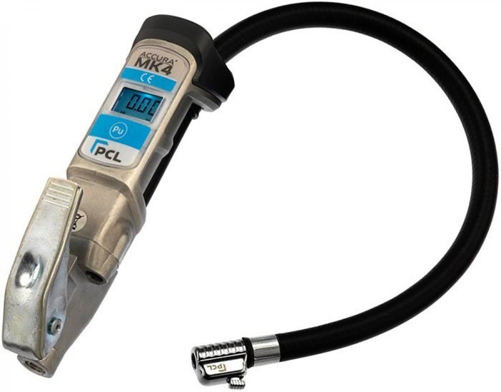 Digitální, kalibrovatelný pneuhustič se skříní z odolného aluminia s přesným tlakoměrem 0,3-17,2 bar. skříň z velmi odolné aluminiové slitiny tlakoměr s digitálním displejem (28 x 20 mm) je chráněný pryžovým pláštěm pohlcujícím mechanické nárazy snadné a rychlé huštění pneumatik (průtok vzduchu 500 l/min) dobře čitelná hodnota naměřeného tlaku (čtení/rozlišení 0,01 bar) připojení na stlačený vzduch přes závit 1/4", max. vstupní tlak 18 bar patentované softwarové algoritmy pro komfortní tlakování i snižování tlaku 2 baterie AAA mají dlouhou životnost (400 hodin používání) v provozu má displej trvalé podsvícení, které se automaticky vypne po 25 s nečinnosti pneuhustiče jsou ve výrobě individuálně testované, jsou kalibrovatelné, ke každému lze dodat příslušný certifikát splňují normu BS EN 12645:2014 vnitřní i venkovní použití (krytí IP54) provozní teplota: -15°C až +55°C sladovací teplota: -30°C až +80°C unikátní ergonomický tvar skříně rozměry: 210 x 50 mm přesnost, provozní spolehlivost a dlouhá životnost vysoká kvalita garantovaná renomovaným britským výrobcem PCL Parametry: rozsah 0,3 - 17,2 bar, délka hadice 0,53 m, koncovka Single Clip-on – koncovka s páčkovým zajištěním s otevřeným koncem, která se připne a drží na ventilu pneumatiky, má kolík, který při nasazení uvolní ventil pneumatiky a tu lze tak nahustit na požadovaný tlak.