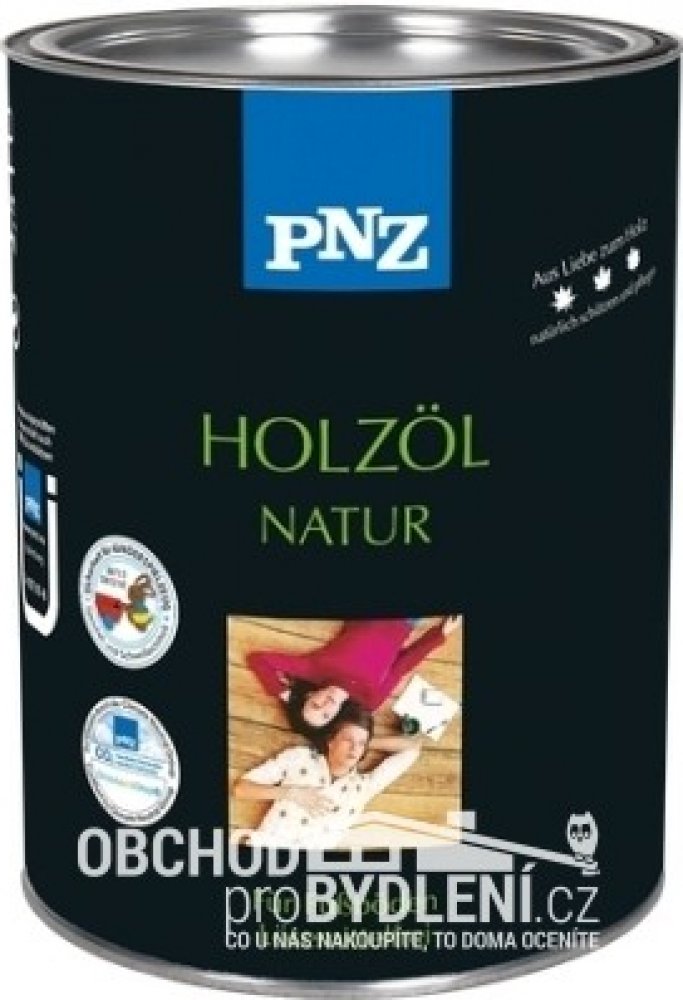 PNZ Přírodní olej na dřevěné podlahy (PNZ-HOLZ-ÖL NATUR (Fussboden-Öl)) Charakteristika: PNZ HOLZ-ÖL je vyroben na bázi přírodních olejů, nátěr je prodyšný, reguluje vlhkost, je silně vodoodpudivý, dodává povrchu brilantní vzhled a zdůrazňuje kresbu dřeva. Velmi dobře proniká do povrchu, chrání a ošetřuje. Použití: pro všechny namáhané plochy – dřevěné podlahy, parkety, desky, schody, pracovní des...