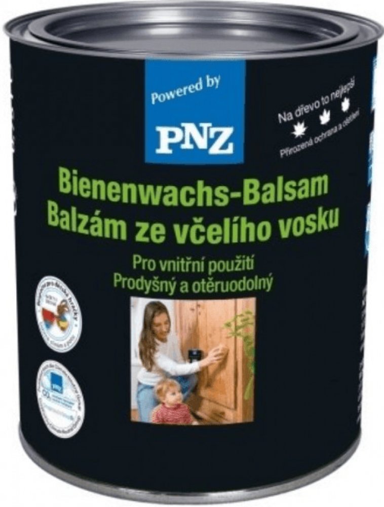 PNZ Balzám ze včelího vosku použijete na oživení vrchních nátěrů. Vynikající ochrana na dřevo a korek v interiéru, např. police, nábytek, dřevěné obložení, dřevěné dekorace. Vyrobeno z přírodních látek, neobsahuje rozpouštědla. Balzám se neloupe, neodprýskává a netvoří šupinky.