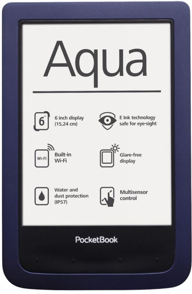 PocketBook Aqua, vodě a prachu odolná čtečka elektronických knih, 6" kapacitní dotykový Pearl E-ink displej, IP57, 4GB, WiFi, 8000 stran, 170g, CZ