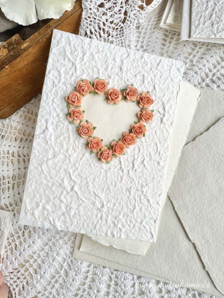 Pod Rukama Přání svatební z ručního papíru - srdce z růží 6