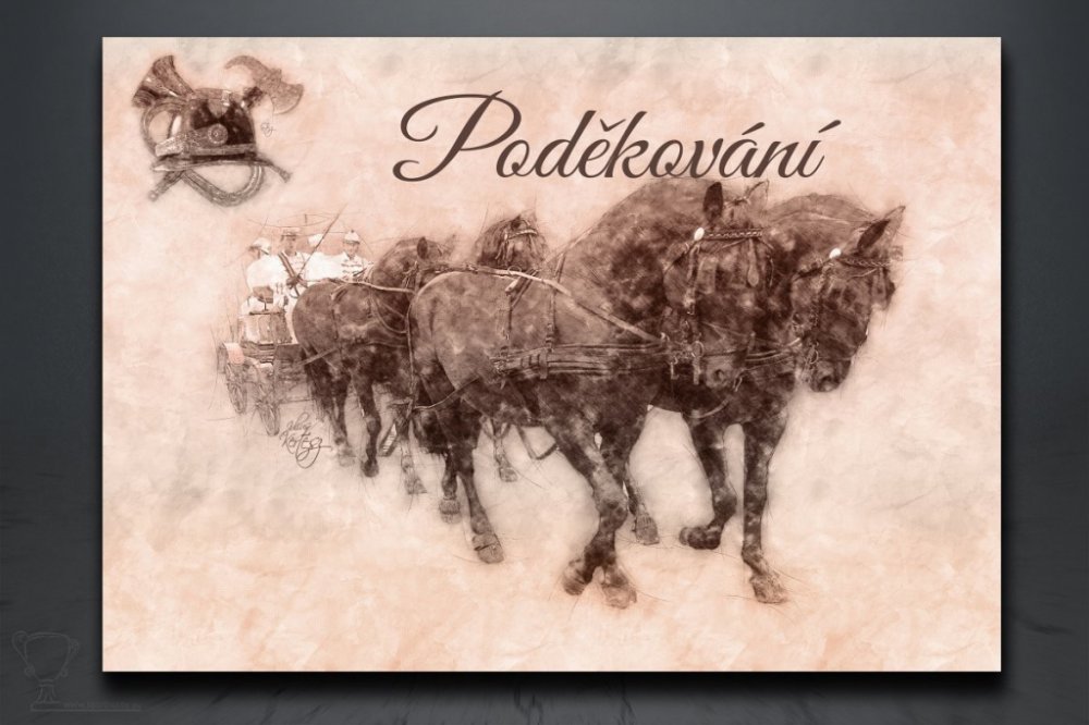 Hasičské poděkování s historickým motivem.