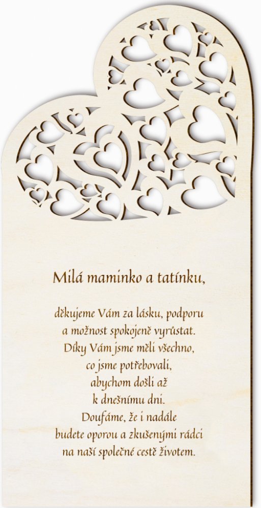 Uživatelé také hledali Poděkování rodičům Woodener PODEKOVANI001 Nakladatelství Doron - Nebojsa Pavel Malé poděkování Euromedia Group, a.s. Nápaditá poděkování z papíru Poděkování za úrodu - Janáčková Zita