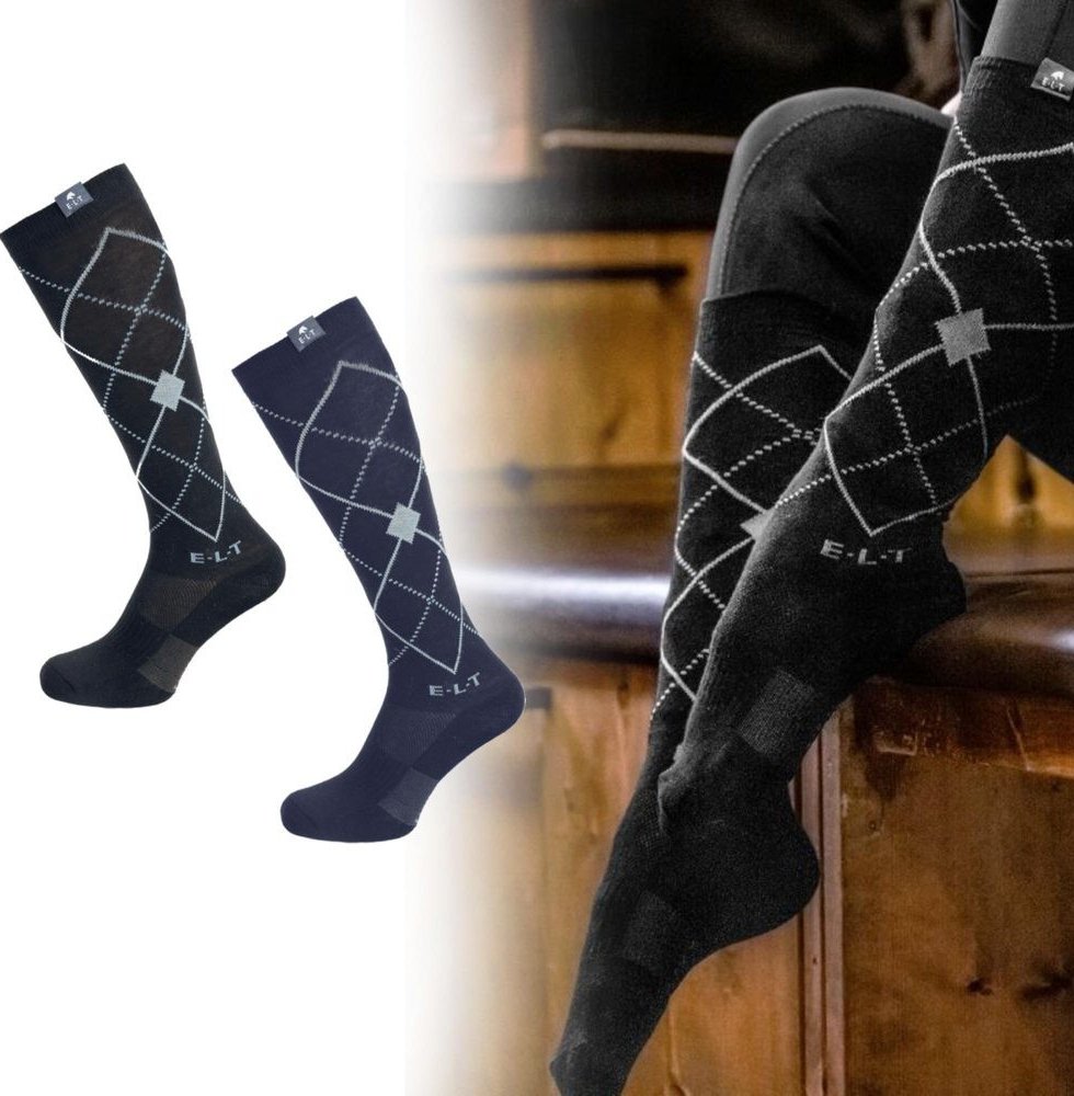 Podkolenky ELT Argyle s moderním kostkovaným designem kombinují styl a funkčnost pro maximální komfort při ježdění.