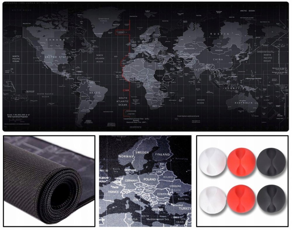 Obrovská podložka na stůl s originálním designem. Mapa světa Vám zaplní celou pracovní plochu a ochrání stůl před poškozením. Na mapě jsou označeny názvy zemí a časových pásem. Tato podložka pod myš je ideálním vzdělávací, ochrannou i funkční plochou. Vysoce kvalitní povrch a zpracování vrchní vrstvy podložky - je vyrobená z nepromokavé tkaniny, která zajišťuje přesnost pohybů myši a snižuje tření...