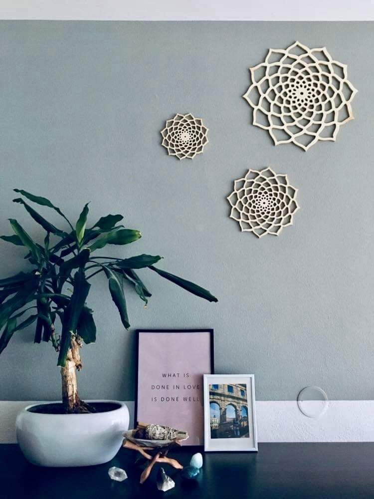 Mandala 3ks je sada tří vyřezávaných dřevěných dekorací s detailními geometrickými motivy, které dodají vašemu domovu osobitý a harmonický vzhled. Díky kombinaci tří kusů vzniká vyvážená dekorace na zeď, která přirozeně zaujme a stane se dominantou prostoru.