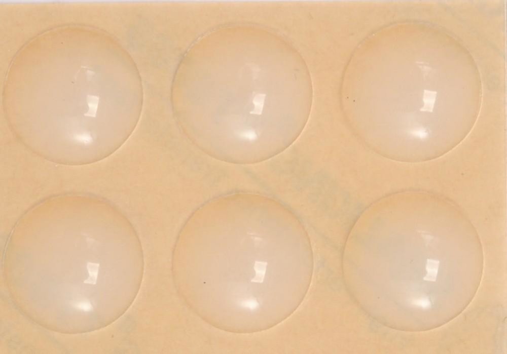 Sada gumových dorazů vhodných jako tlumení dorazu zavírání skleněných dvířek či jako malé protiskluzové nožičky pro skleněné desky a jiné průhledné předměty.