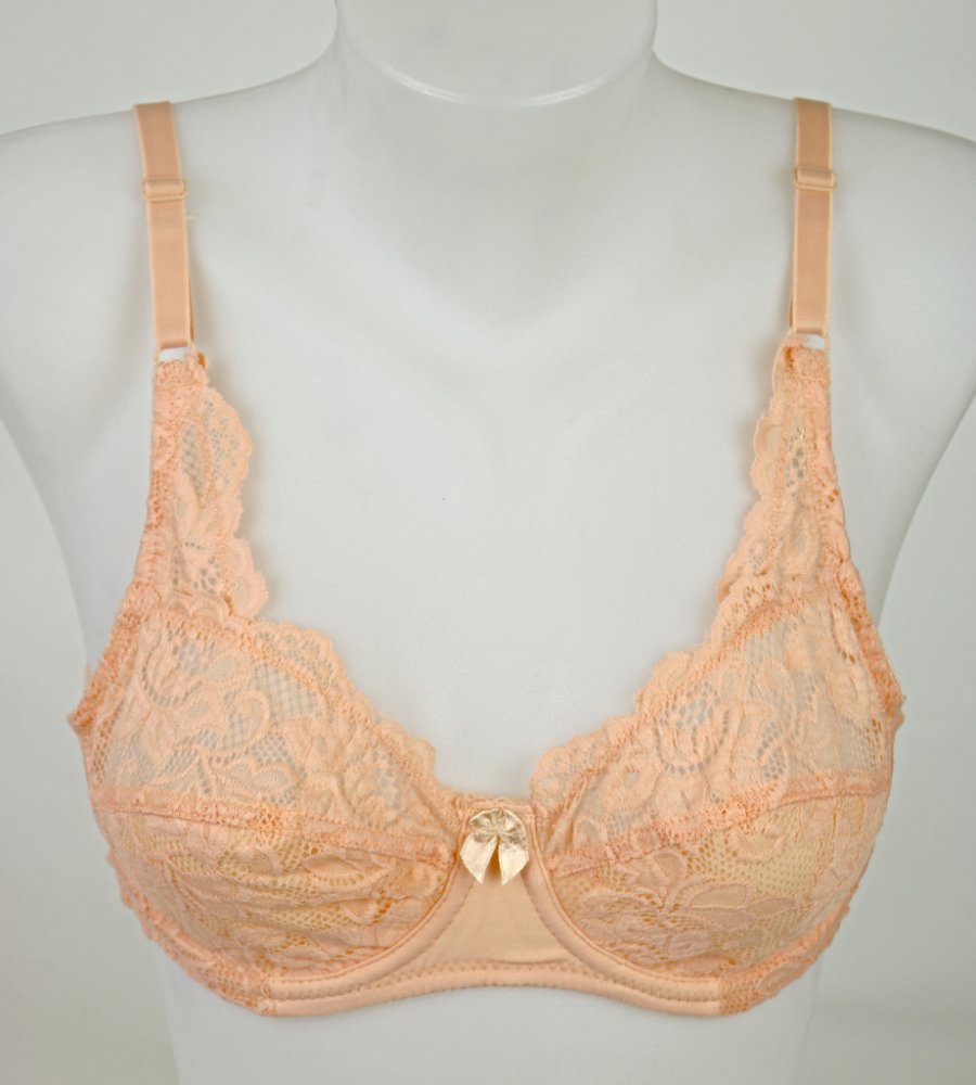 podprsenka s kosticemi a krajkou lososová
