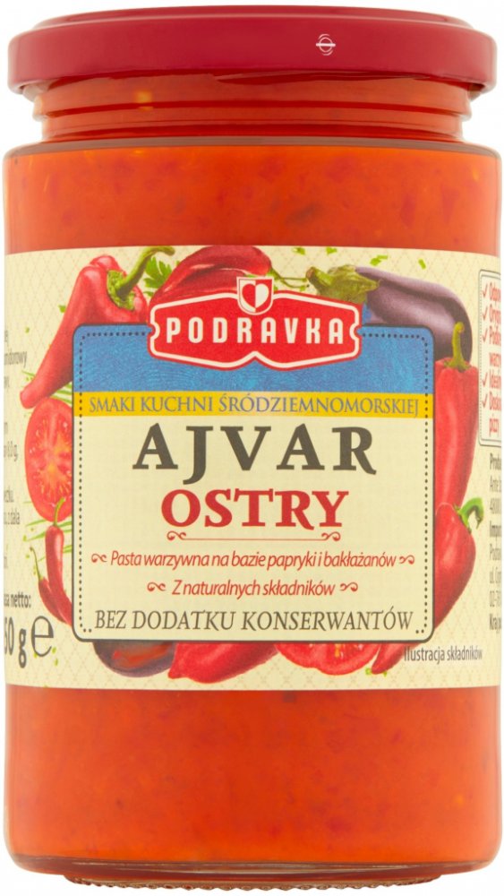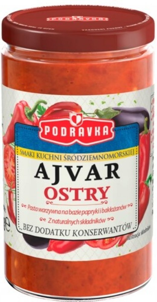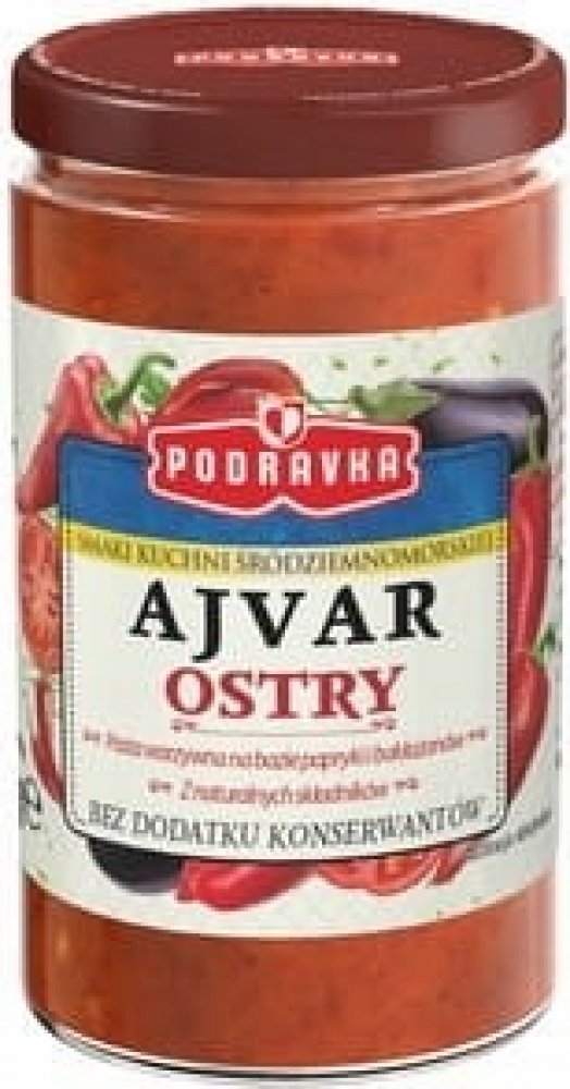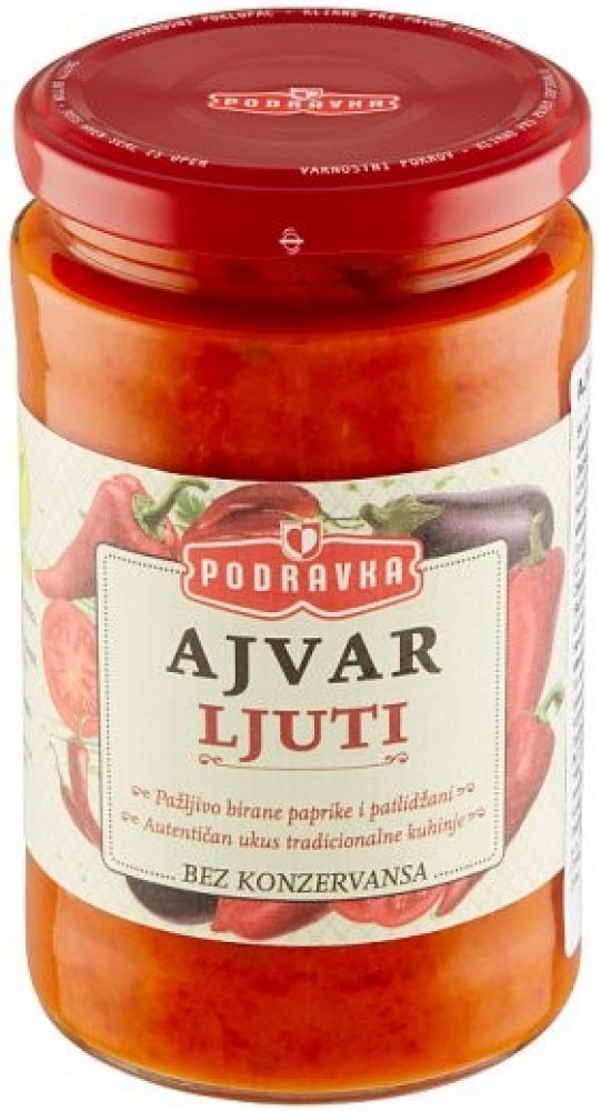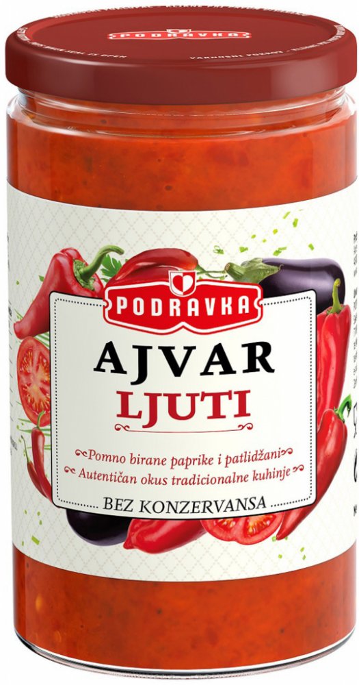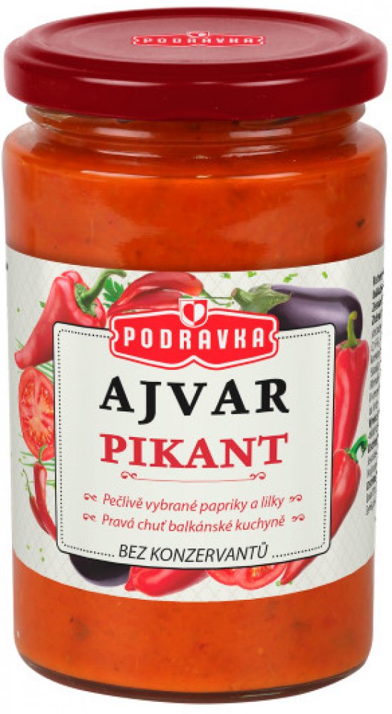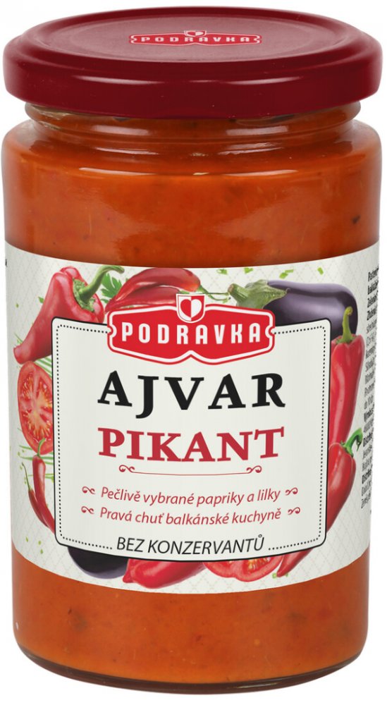 Ajvar je čistě zeleninová příloha z paprik a lilku dochucená směsí koření, která neobsahuje žádné přídatné látky („éčka“). Podravka ve svém sortimentu nabízí 2 základní druhy Ajvaru – jemný. Použití Ajvaru je mnohostranné.