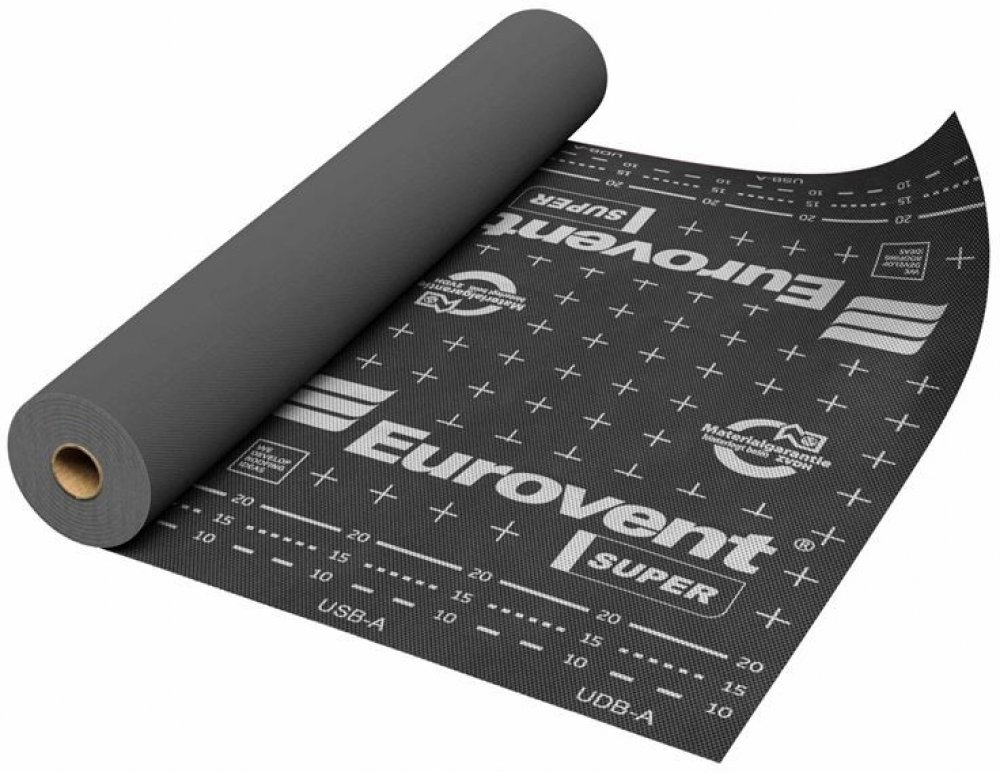 Střešní membrána Eurovent SUPER PREMIUM, trojvrstvá, vysoce difúzní. Používá se na šikmé střechy se zateplením a odvětráním, ale také na střechy s plným bedněním. Ve své třídě má nejvyšší odolnost proti protržení a v souvislosti s tím si jí oblíbili i nejnáročnější pokrývači. Je vhodná pro betonové, pálené tašky, plechové střešní krytiny, hliníkové plechy, břidlici a také pro stavby s rámovou kons...