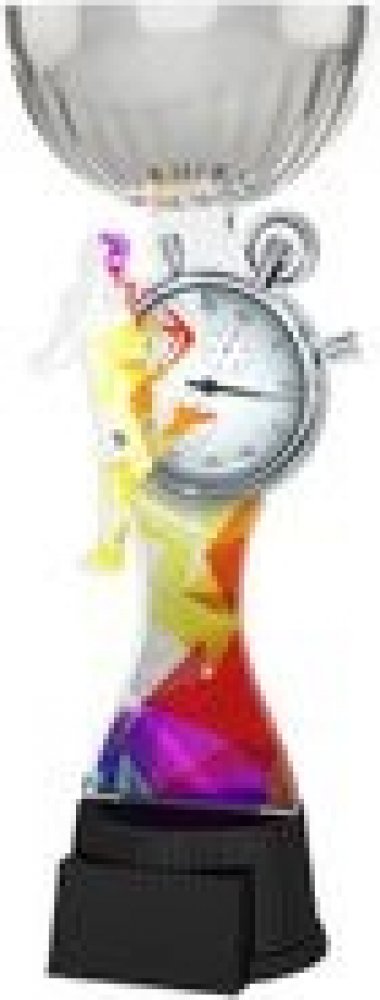 Akrylátová trofej. V ceně trofeje není zahrnuta cena štítku. Akrylátový motiv 0.6 cm. Stříbrný kalich. Výšky trofejí jsou orientační. Oboustranný tisk.