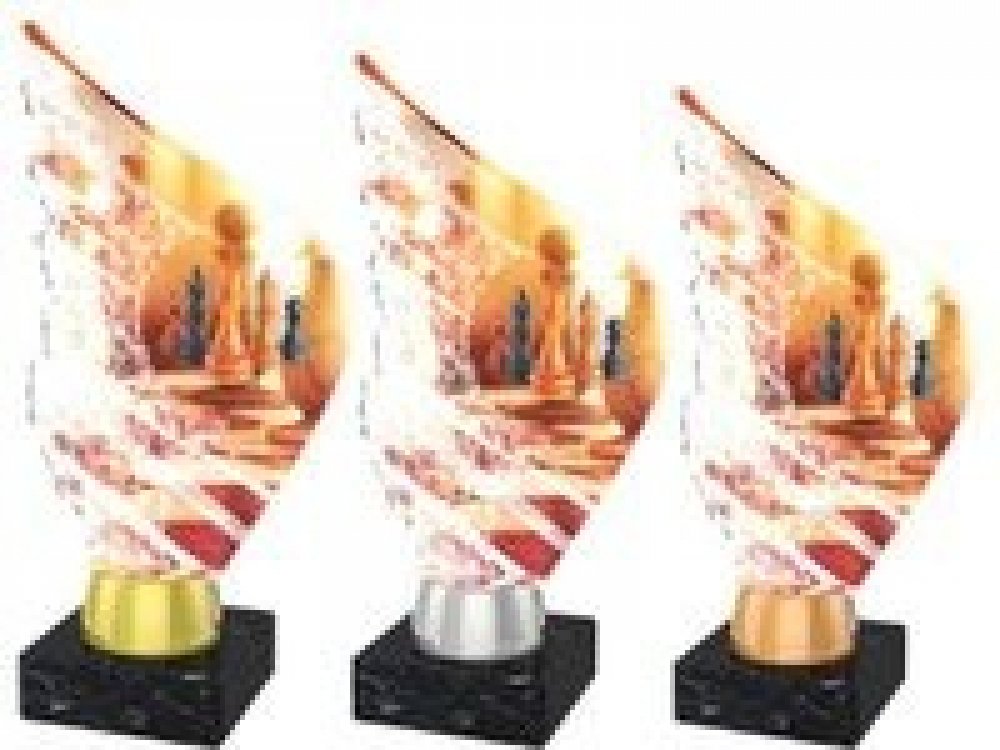Akrylátová trofej. V ceně trofeje není zahrnuta cena štítku. Akrylátový motiv 0.3 cm. Držák motivu A-zlato, B-stříbro, C-bronz (možno vyměnit). Výšky trofejí jsou orientační.