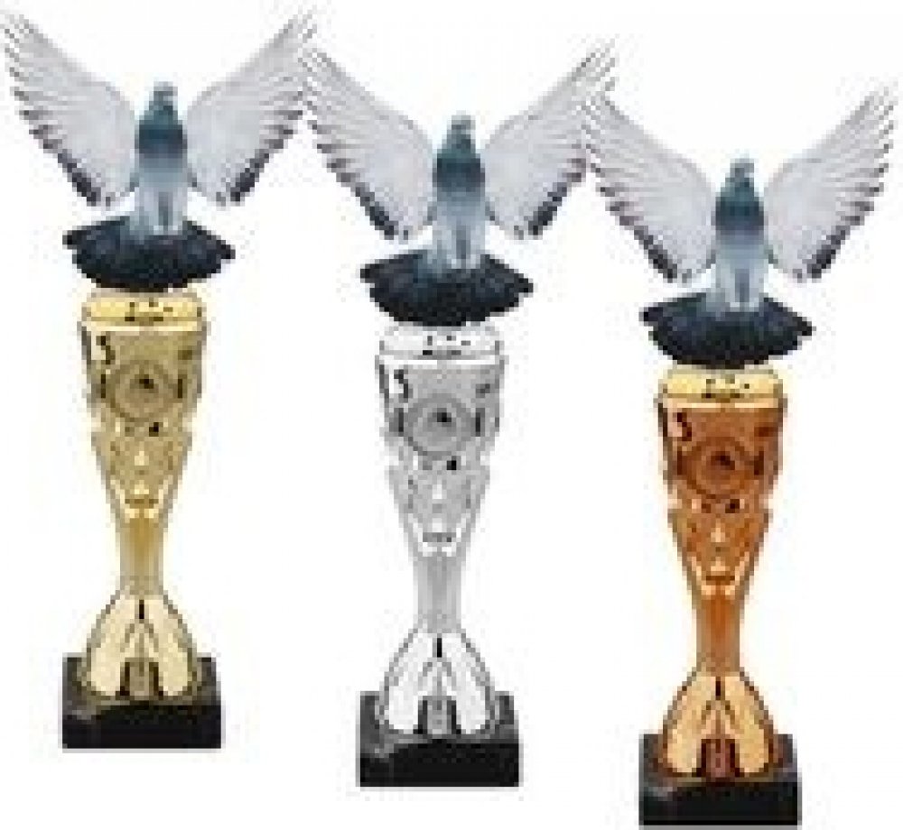 Akrylátový motiv 0.4 cm. V ceně trofeje není zahrnuta cena štítku. Výšky trofejí jsou orientační. Zlatá trofej 33cm, stříbrná trofej 30cm, bronzová trofej 27cm. Oboustranný tisk.