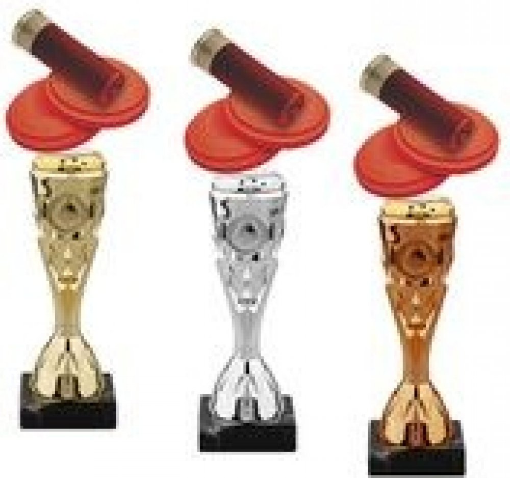 Akrylátový motiv 0.4 cm. V ceně trofeje není zahrnuta cena štítku. Výšky trofejí jsou orientační. Zlatá trofej 33cm, stříbrná trofej 30cm, bronzová trofej 27cm. Oboustranný tisk.