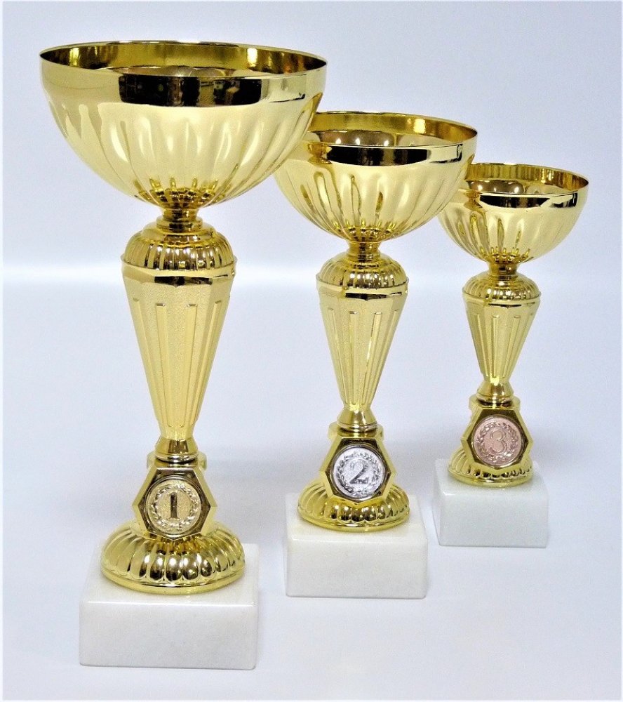 317-A67-9. Průměr kalichů 12, 10, 8 cm. Velikost pohárů s pořadím je uvedena za lomítkem katalogového čísla. Při nákupu celé sady (317-A67-9/26-22-18cm) text na štítky napište jen do rubriky ,,štítek na" např. EVROPSKÝ POHÁR 1. - 3. místo - MUŽI 11. 11. 2023 Písek a do součtu štítků zadejte 3 !!! Ukázka možného zpracování štítku viz. další foto. Objednáváte-li více pohárů a pro různé kategorie, zpracujte Váš požadavek na štítky ve svém PC a soubor přiložte před uzavřením objednávky (2 krok pokladna). -