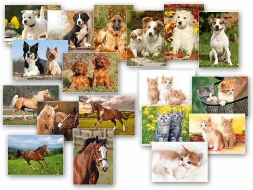 Mix 24 ks pohlednic zvířat z kolekcí Z018, Z033, Z036 a Z037. Najdete zde obrázky, psů, koček a koní. Papír: pohlednicový karton 240 g Povrchová úprava: UV lak Text: 0/6 Uvedená cena je za 1 ks.