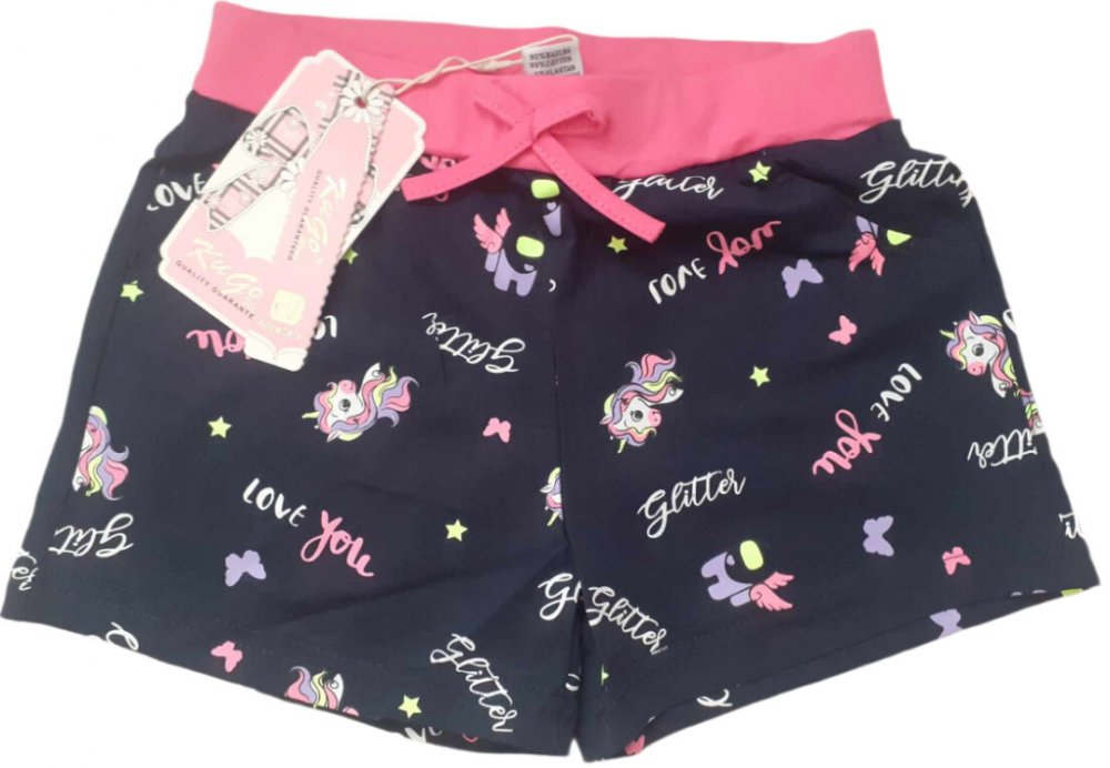 Pohodlné dívčí bavlněné kraťasy šortky s potiskem jednorožců Černá