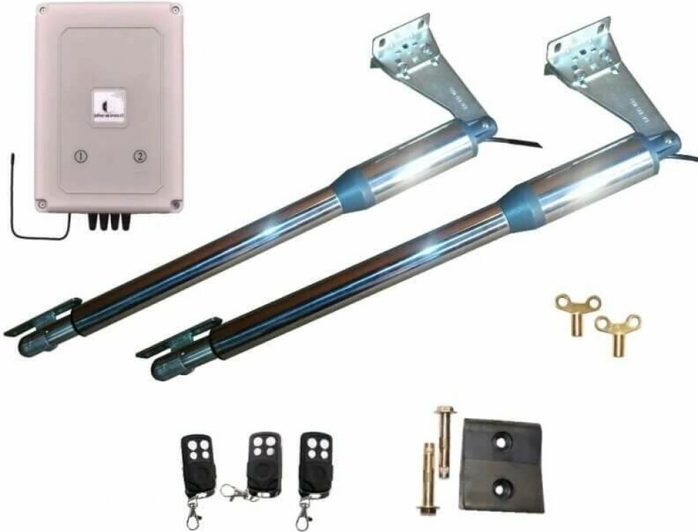 Kompletní set pohonu A1 pro téměř každou dvoukřídlou bránu, nebo vrata do délky jednoho křídla 2,5m = průjezd 5m a do hmotnosti jednoho křídla 200kg.