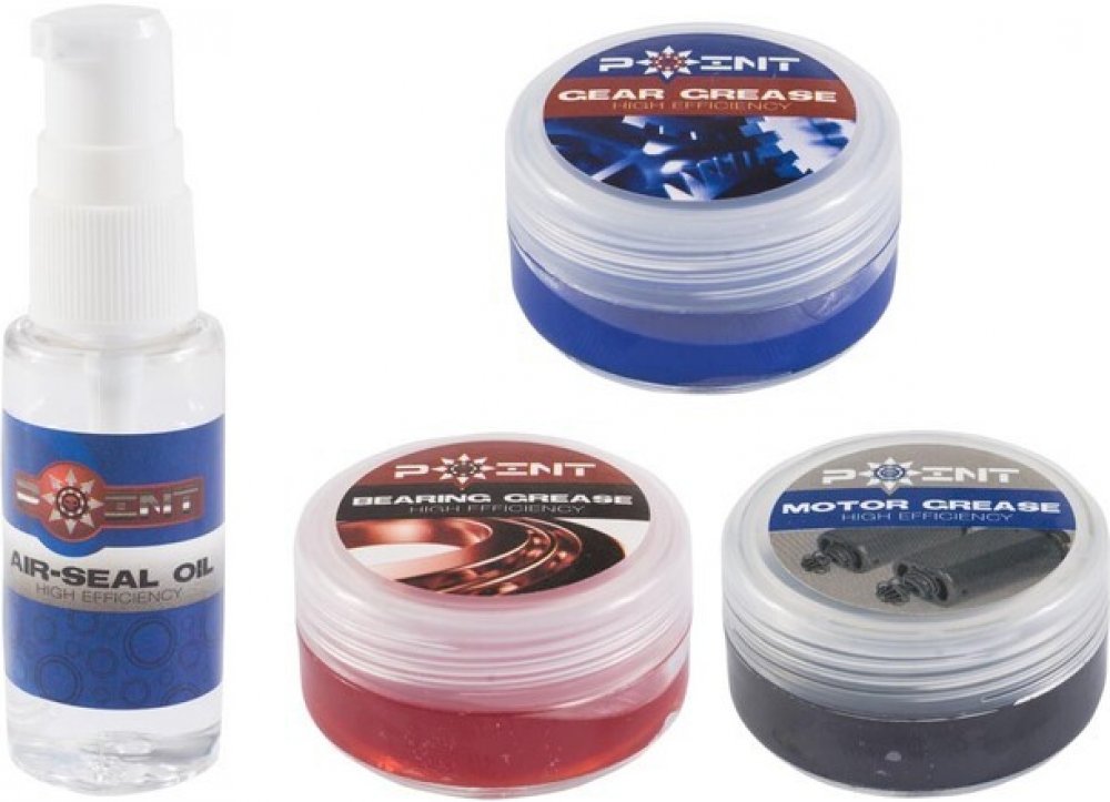 Set maziv značky POINT pro airsoftové zbraně. Používejte v souladu s návodem k vaší zbrani. Pokud si nejste jisti postupem, svěřte servis a promazání odborníkem.Obsah balení:1 x AIR-SEAL OIL (olej na těsnění a gumové části)1 x GEAR GREASE (mazivo na ozubená kola)1 x BEARING GREASE (mazivo pro ložiska)1 x MOTOR GREASE (mazivo pro el. motorky)Soubor ke stažení:Návod k obsluze a bezpečnostní pokyny (...