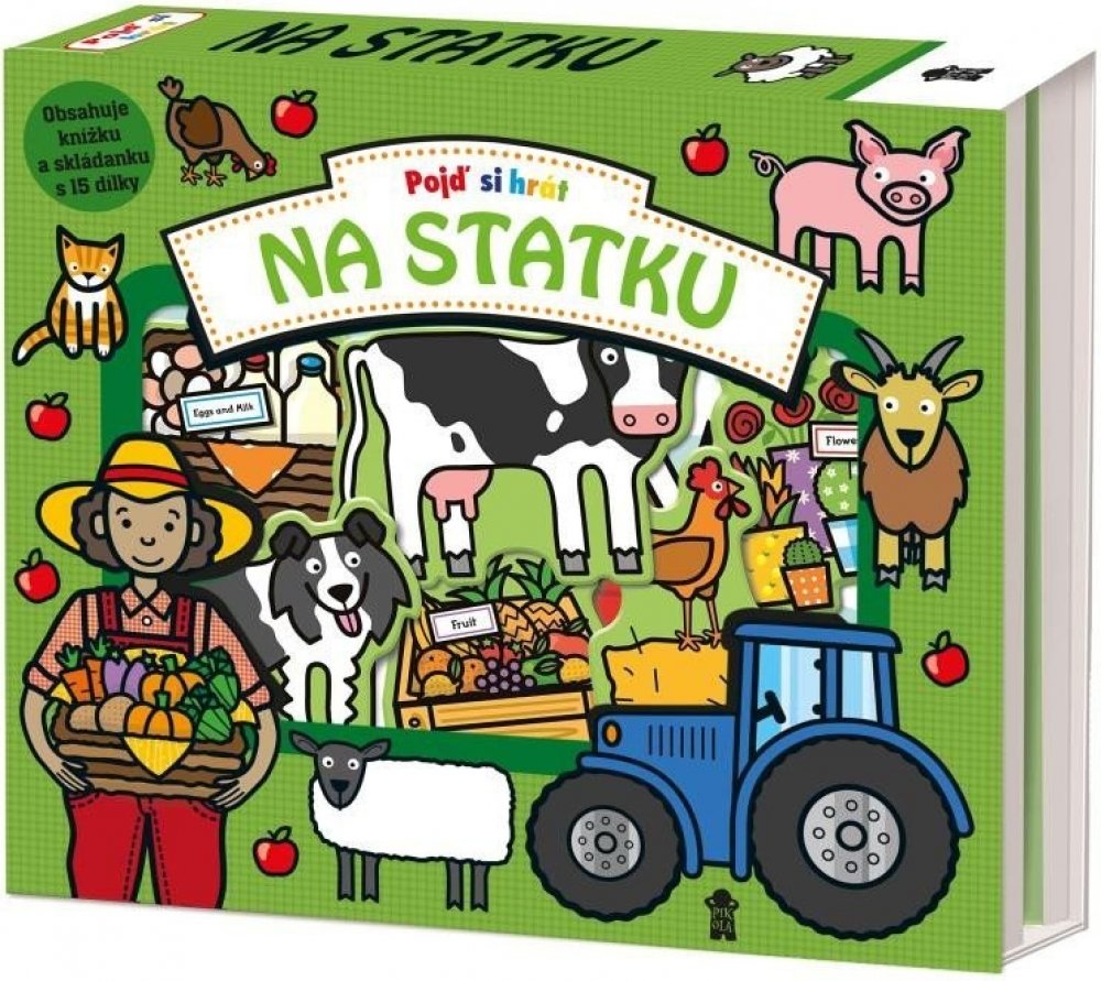 Zábavní box pro nejmenší obsahuje bohatě ilustrovanou knížku se scénami z života na statku a sadu 15 nezbytností pro každého malého farmáře Dokážeš dílky skládanky umístit na správné místo? Pomůžeš farmáři Bobovi a jeho dceři Elišce najít ztracená zvířata i předměty které potřebují na trh? A kde se schovává kocourek Mourek? Sada rozvíjí představivost koordinaci oko – ruka i schopnost řešit problém...