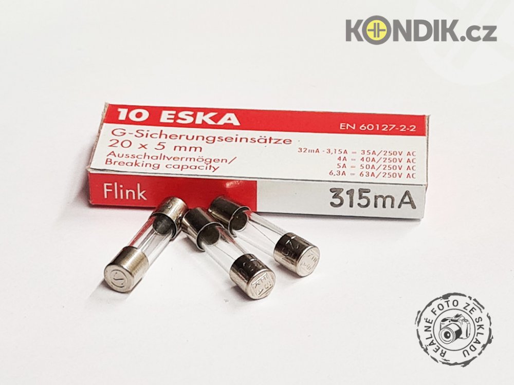Trubičková pojistka; skleněná; průměr 5mm; délka 20mm; rychlá (F) charakteristika vypnutí; vypínací schopnost 35A; max. napětí 250VAC; montáž do patice nebo držáku.