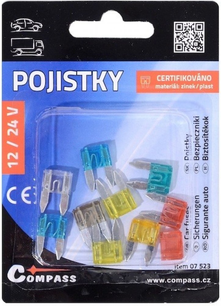 Sada 10 kusů nožových pojistek mini pro použití v automobilech (max. 24V).