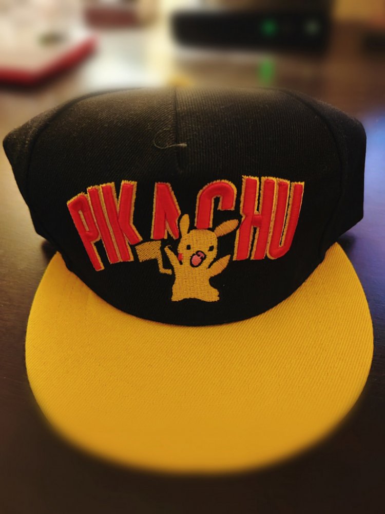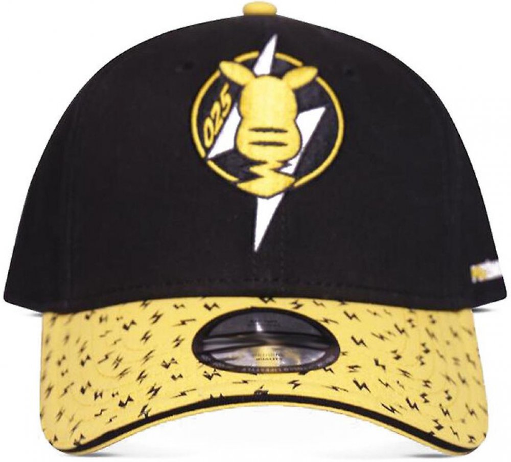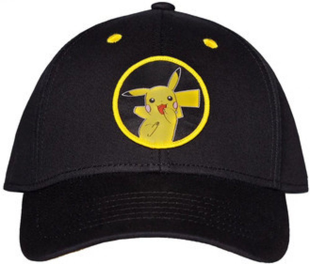 Černá kšiltovka s rovným kšiltem, žlutými detaily a motivem Pokémona Pikachu. Na zadní straně kšiltovký je plastový řemínek sloužící k nastavení vhodné velikosti.