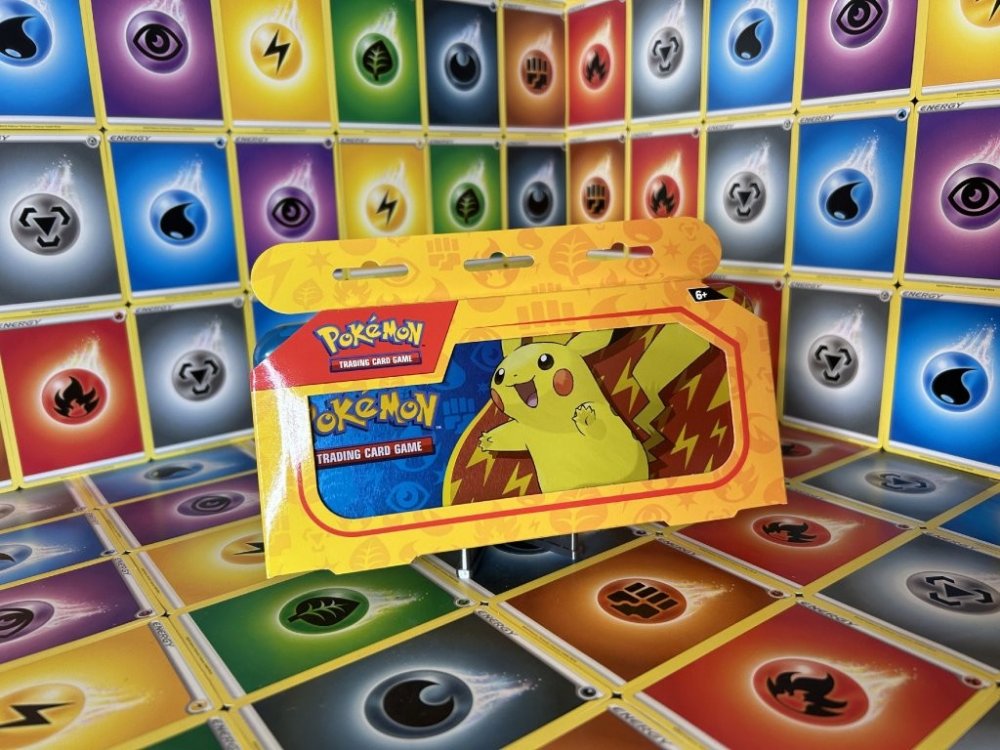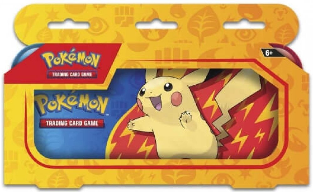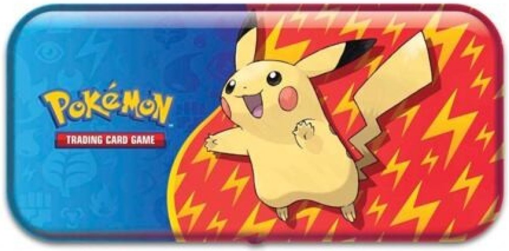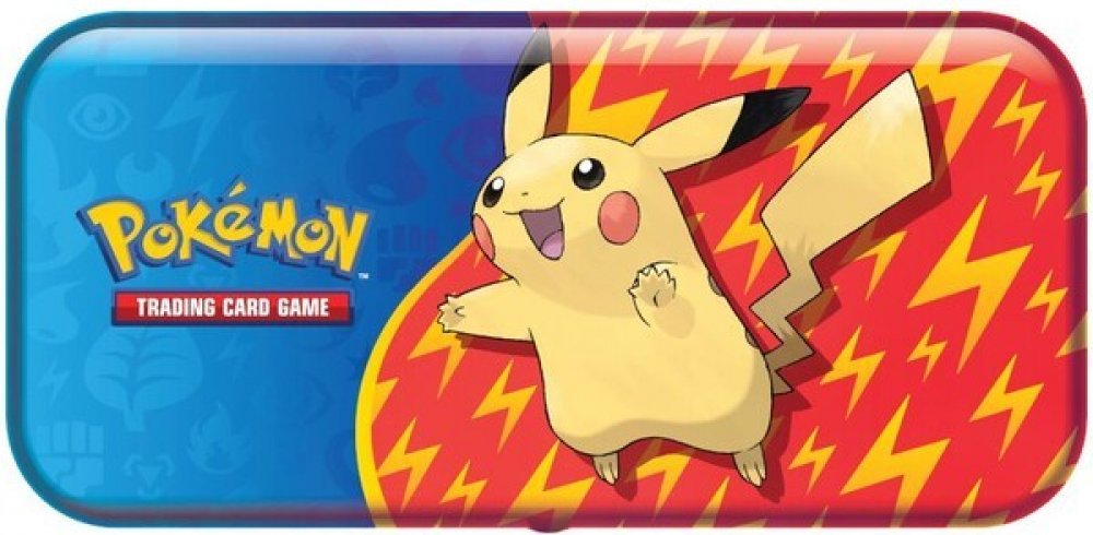 Plechový penál na tužky Pokémon Back to School Pencil Tin. Plechová krabička s motivem oblíbeného bleskového Pokémona Pikachu pomůže udržet pořádek v tužkách a pastelkách každému trenérovi Pokémonů. Navíc Plechovka obsahuje 2 náhodné booster balíčky karet karetní hry Pokémon TCG, které vám pomohou rozšířit vaši sbírku.