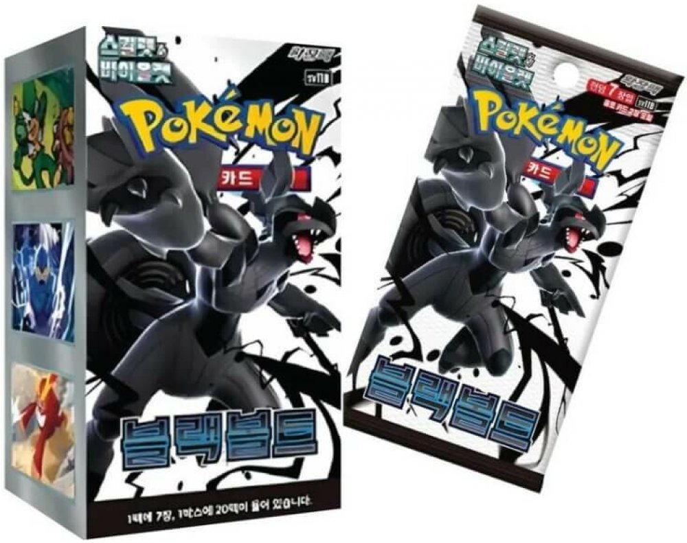 Balení 20 korejských doplňkových balíčků ze sady Black Bolt. Každý balíček obsahuje 7 náhodných karet v korejštině.