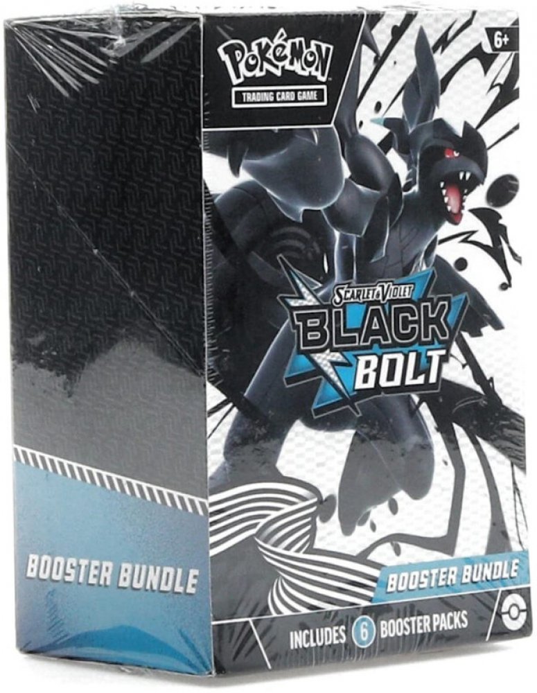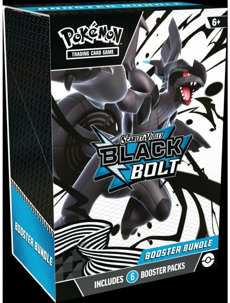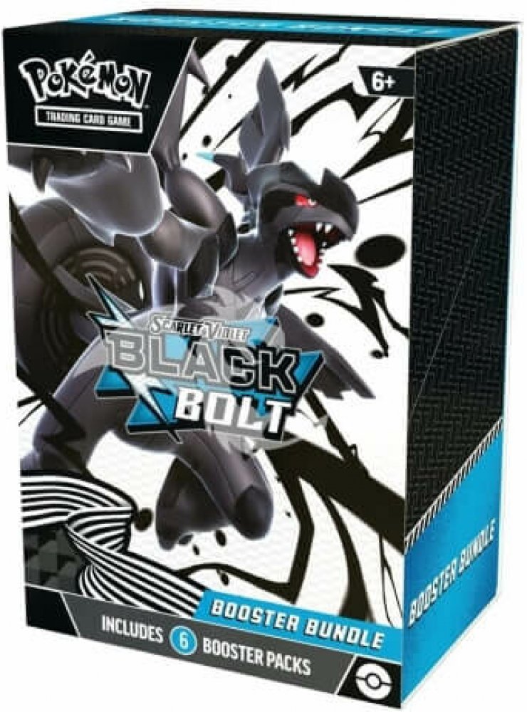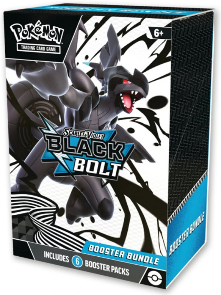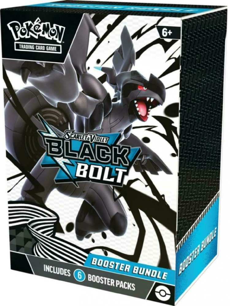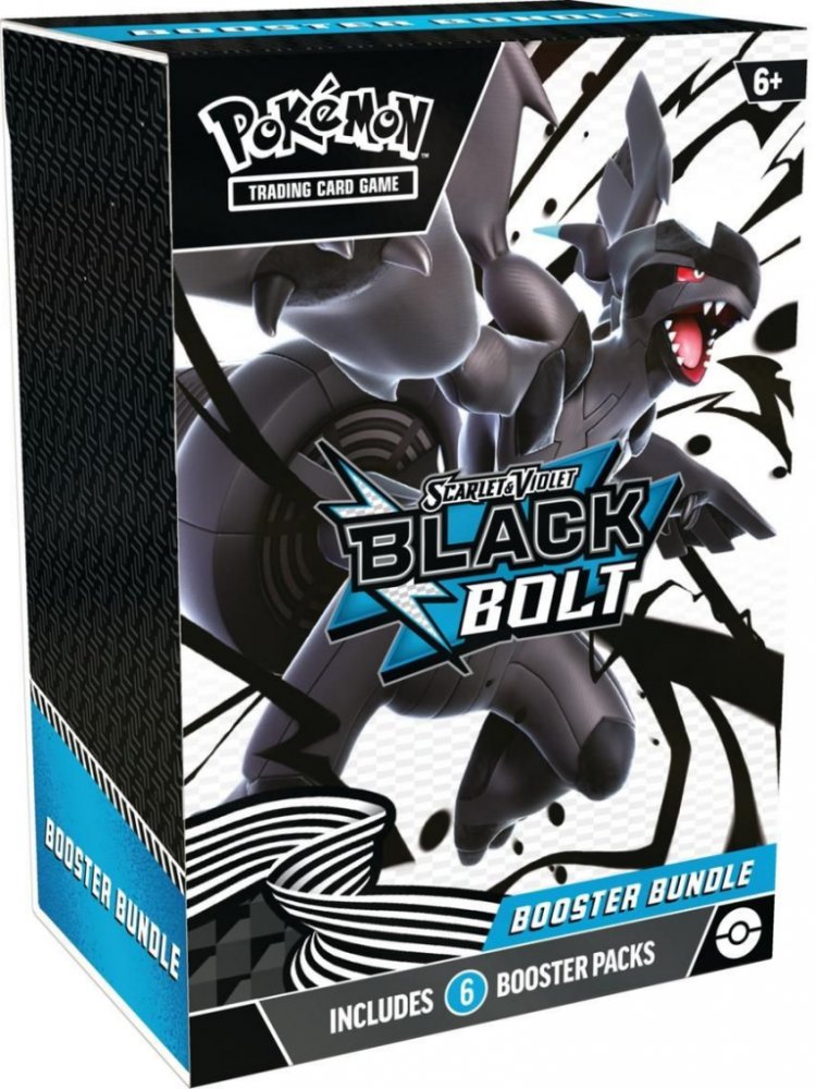 Pokémon TCG SV10.5 Black Bolt Booster Bundle. Součástí 6 booster balíčků Pokémon karet. Každý balíček obsahuje 10 náhodných karet. Celkově tak získáte 60 karet.
