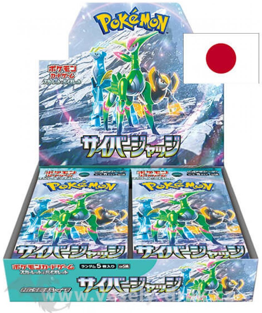 Japonský Booster Box Pokémon TCG: Scarlet & Violet Cyber Judge - v balení najdete 30 balíčků Pokémon. V každém z nich je pak 5 náhodně namíchaných karet. Edice Cyber Judge vychází současně s edicí Wild Force. Anglické karty těchto dvou japonských edic naleznete v anglické edici Temporal Forces a reprezentují tak Ancient a Future Pokémony.