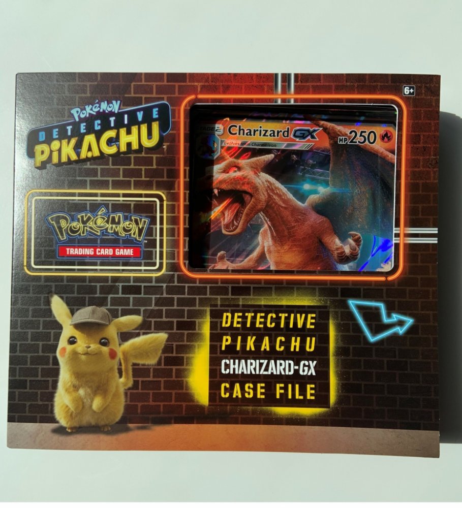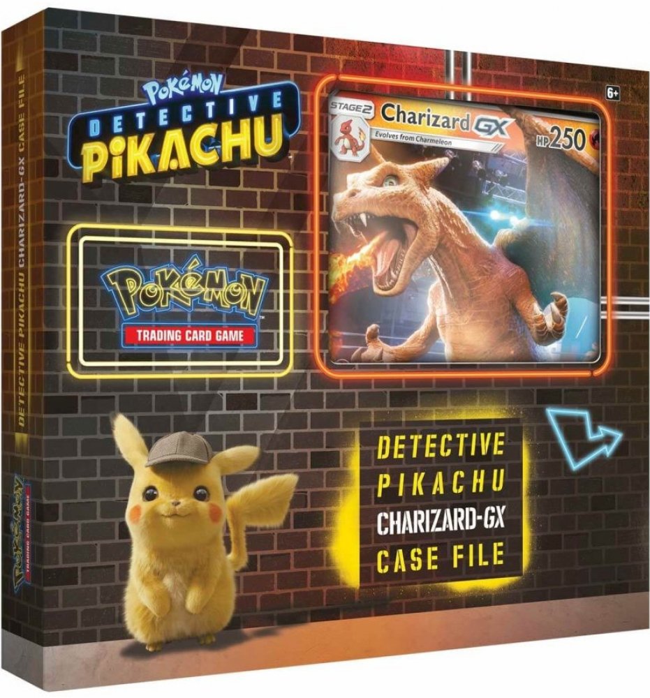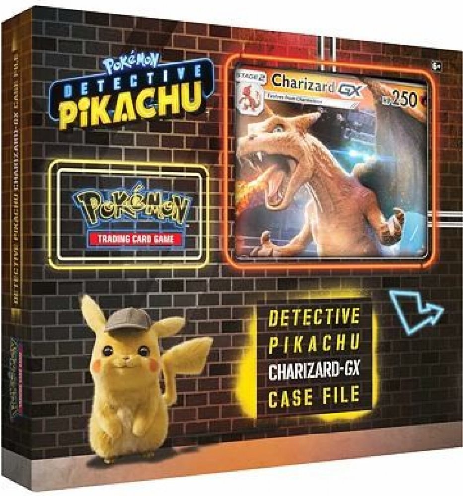 Pomozte detektivovi Pikachu vyřešit nový případ! Začněte nové dobrodružství v Rhyme City s balením Pokémon Detective Pikachu Charizard-GX Case File, ve kterém na vás čeká nebojácný Pokémon Charizard ve své foilové GX promo kartě. V balení se dále nachází foilová obří jumbo karta s Charizardem-GX, 4 boostery detective Pikachu, 2 klasické boostery a kód do online hry.