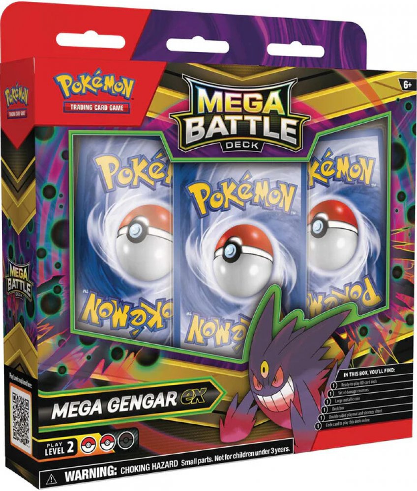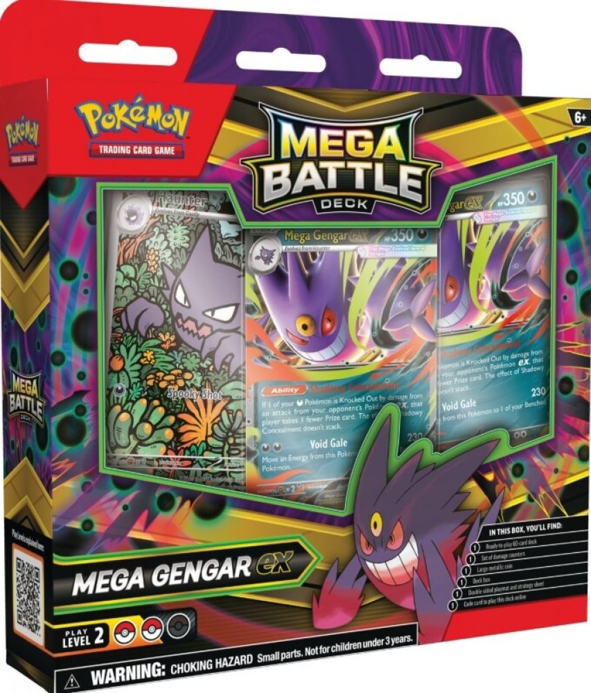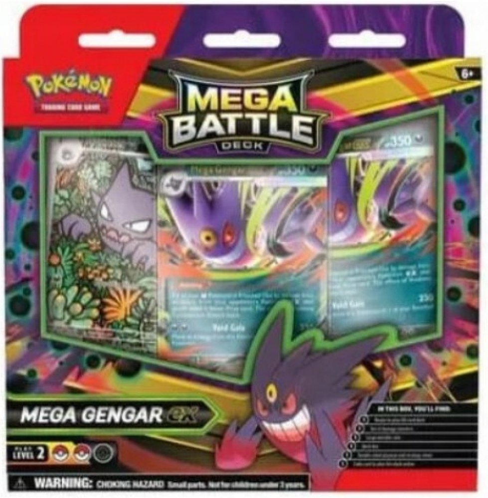 Pokémon TCG: Mega Battle Deck - Mega Gengar ex je hotový herní balíček, se kterým můžeš okamžitě vyrazit do boje. Tento produkt je ideální volbou pro mírně pokročilé i zkušené hráče, kteří chtějí silný balíček připravený k použití bez nutnosti stavby vlastního decku.