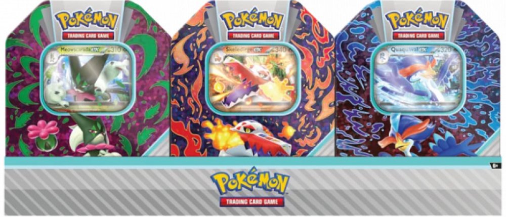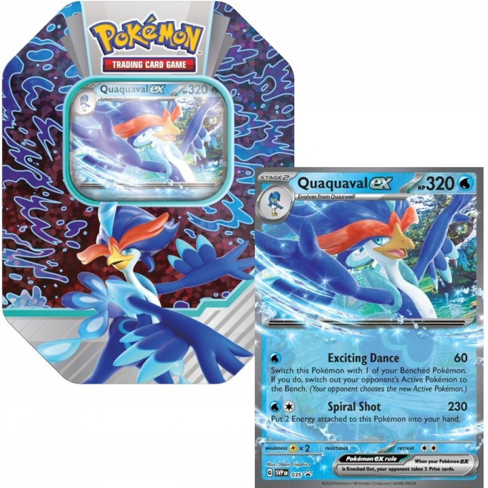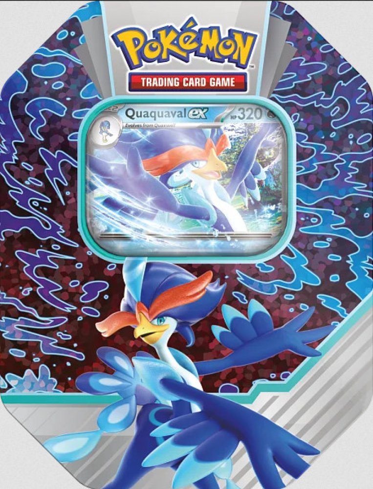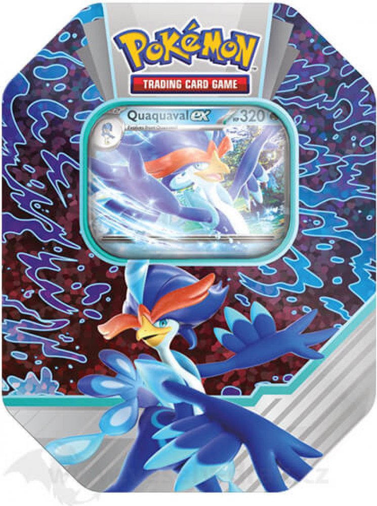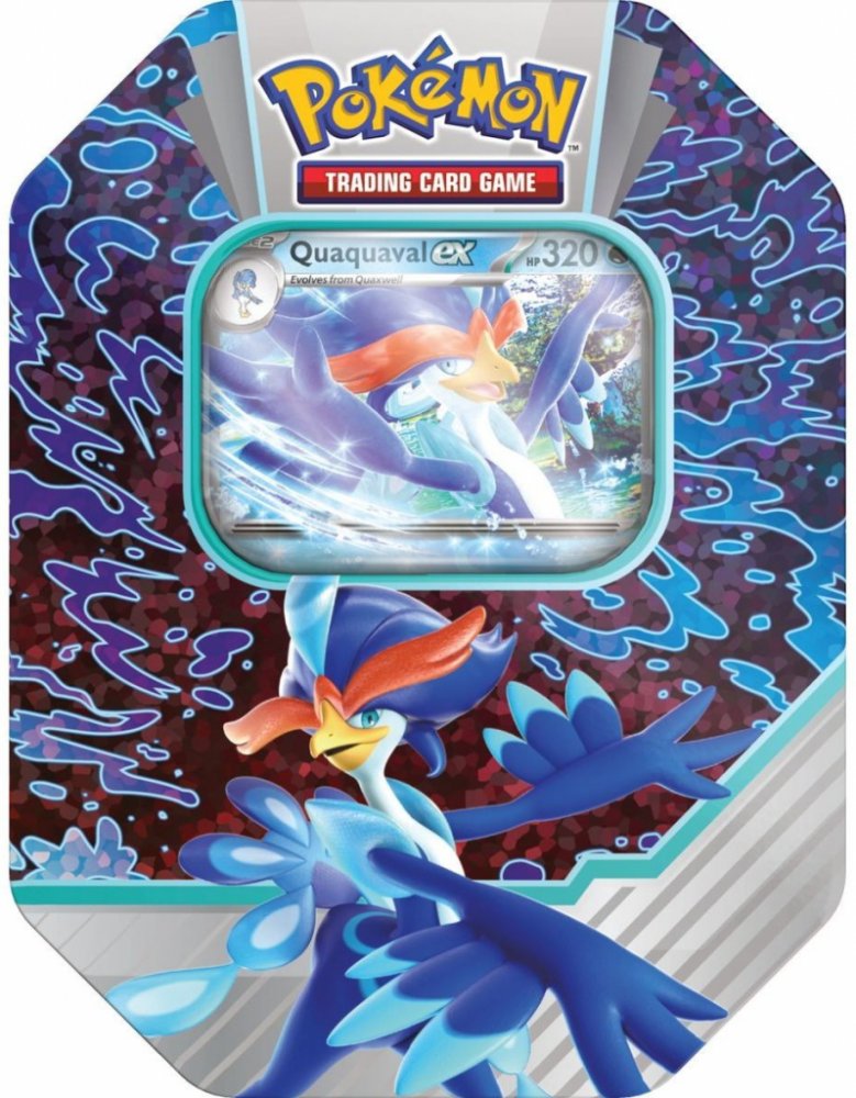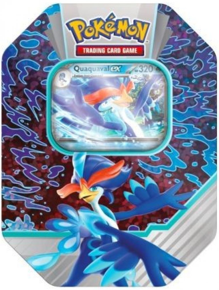 Pokémon plechovka Paldea Partners ex Tin je speciální produkt karetní hry Pokémon TCG v podobě krásné plechové krabičky s motivem Pokémona Quaquaval ex, jehož promo kartu kromě 4 booster balíčků také obsahuje. Plechovka je ideálním, cenově dostupným dárkem pro každého trenéra Pokémonů.